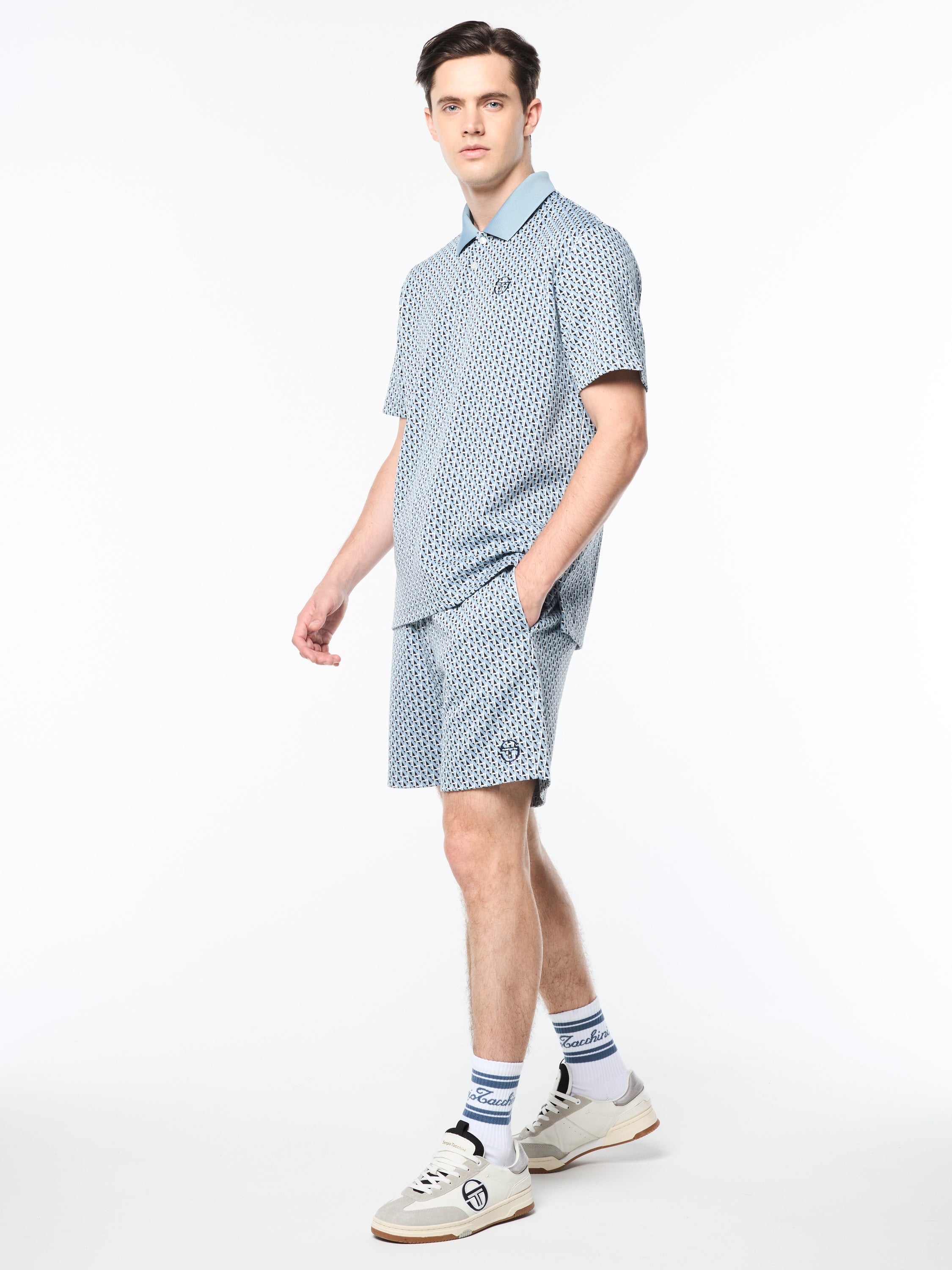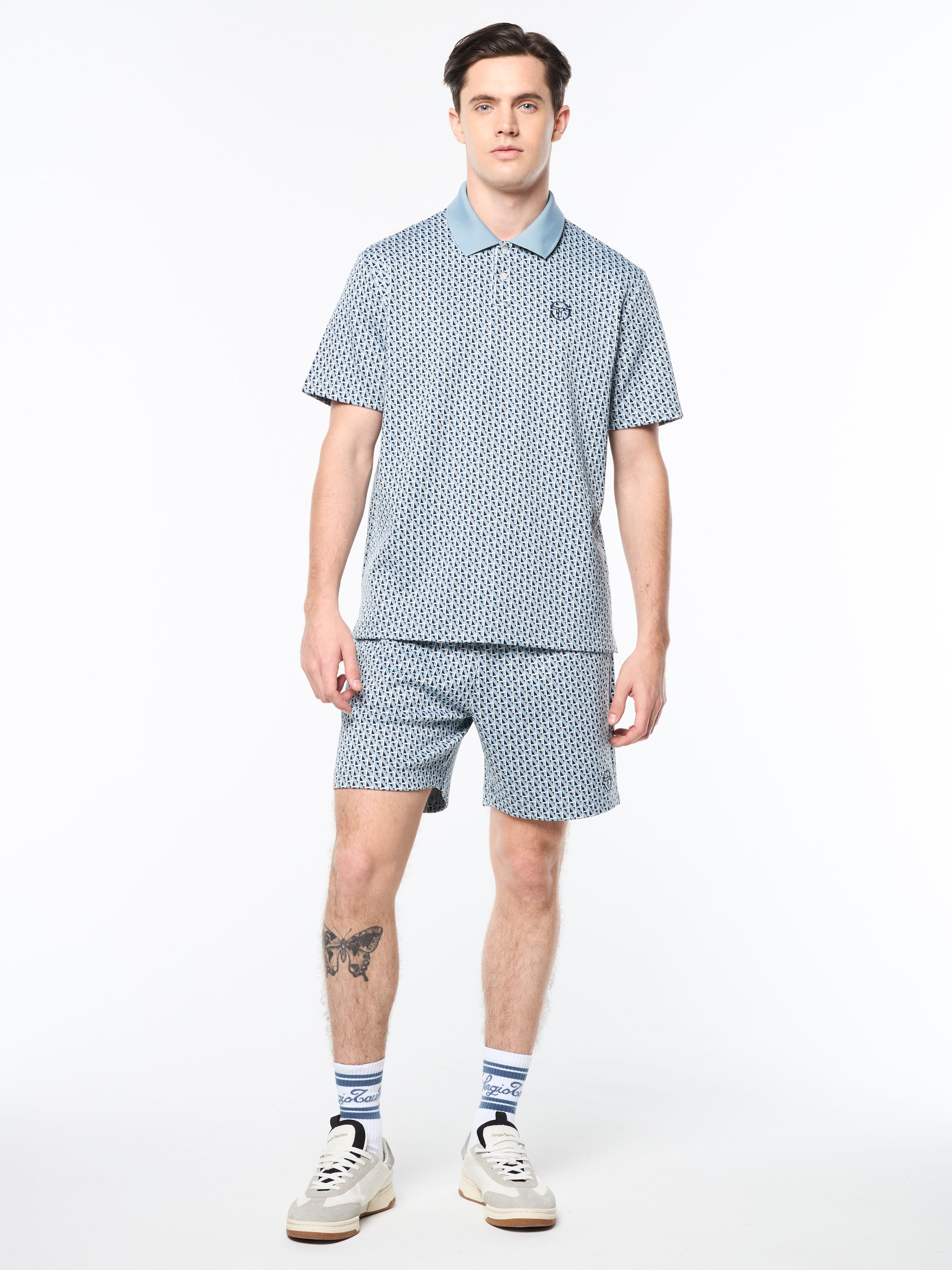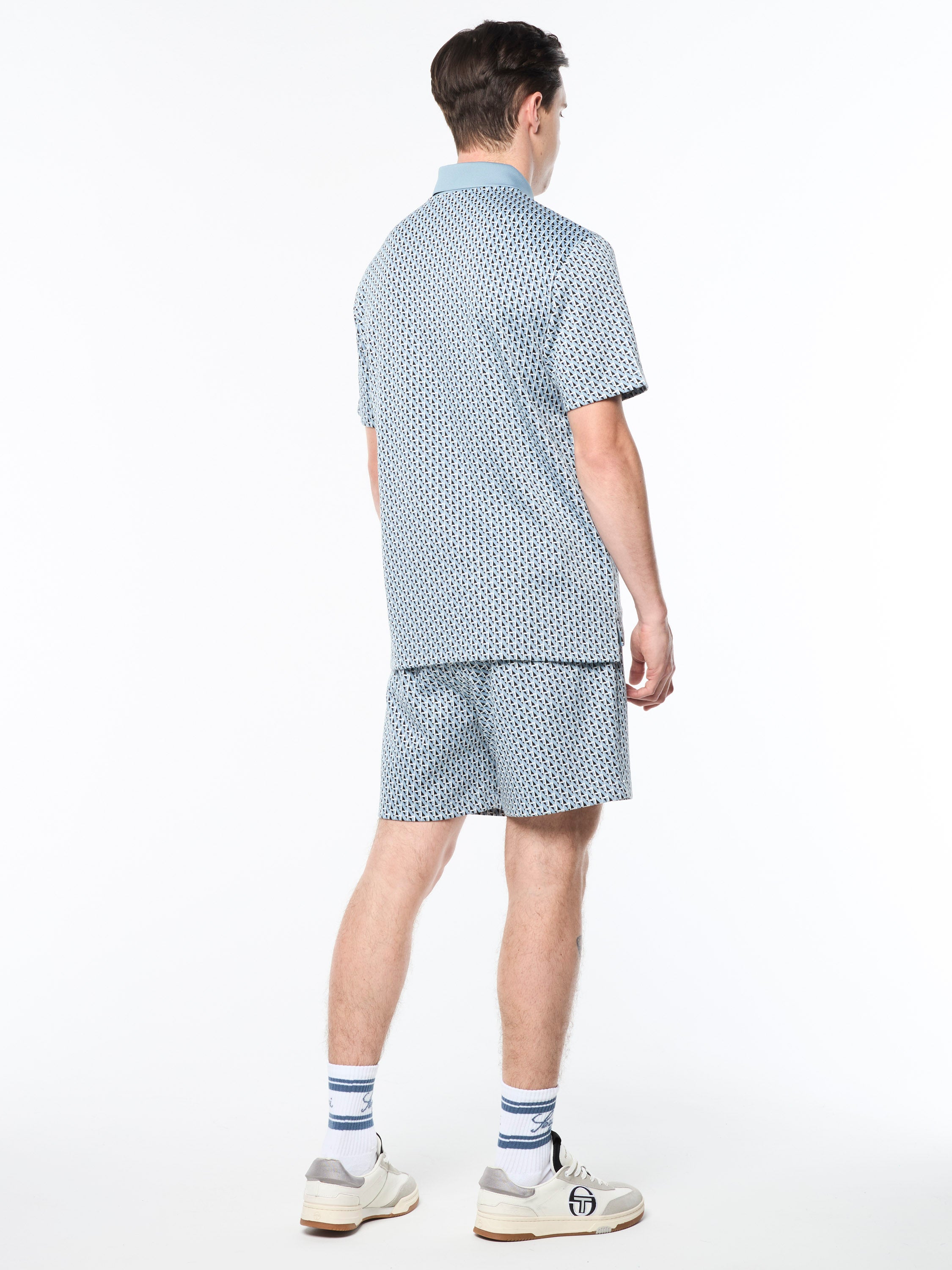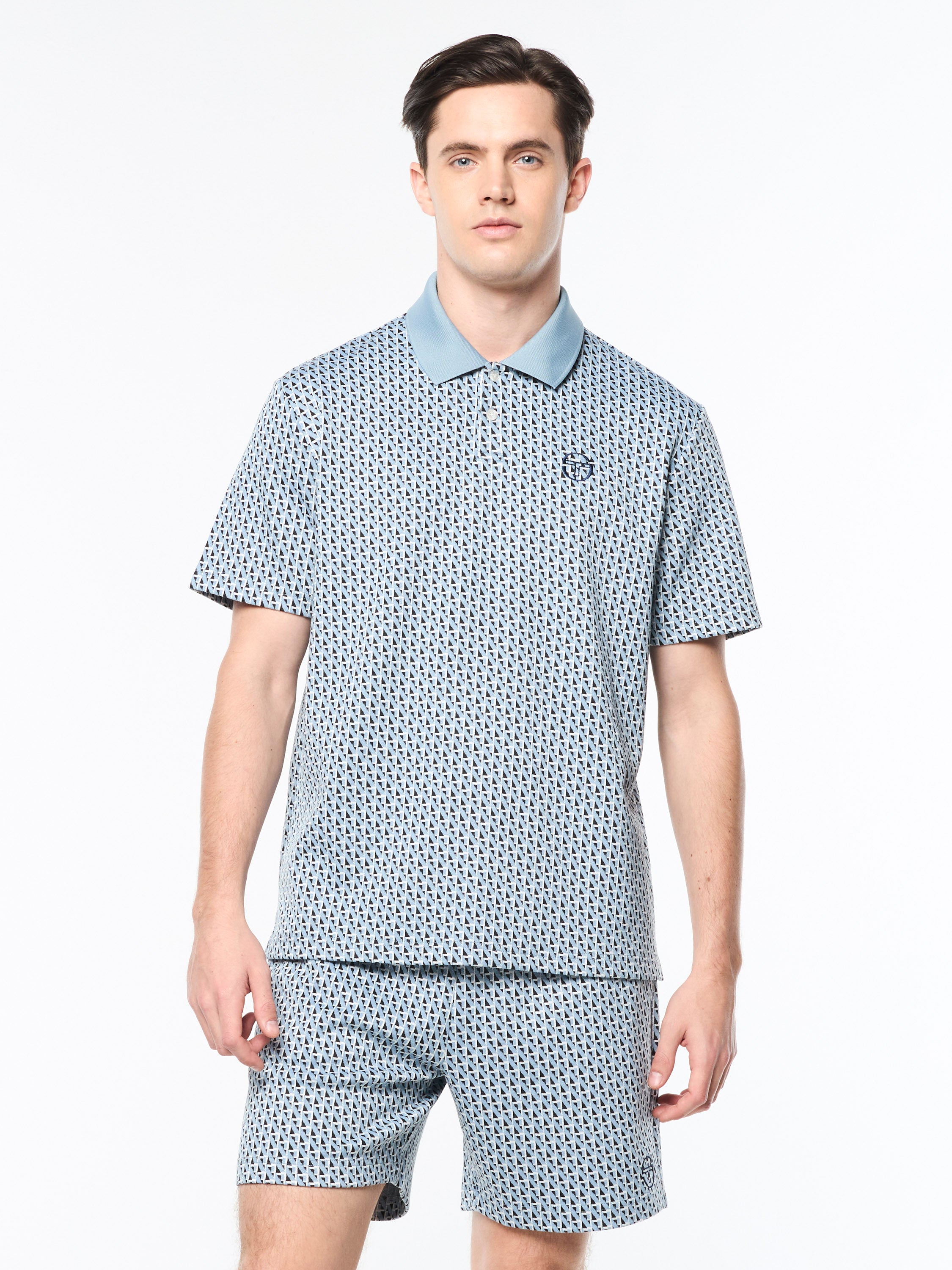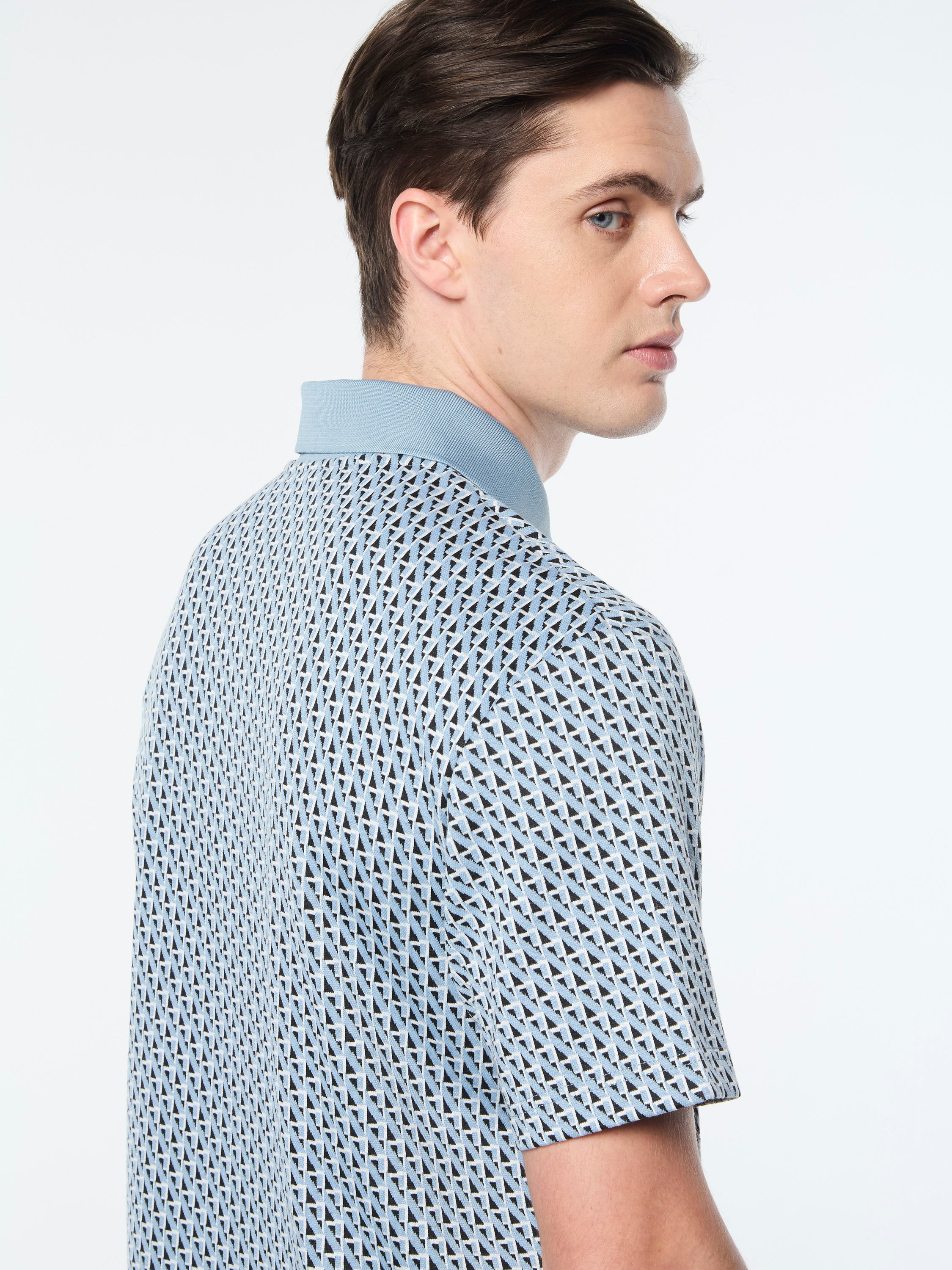 Keep it classy with our Paolo Knit Polo, featuring an all-over geometric motif in premium jacquard-knit fabric that's stylish and strong with a structured, wrinkle-resistant feel. Perfect for everyday wear, this elevated polo is cut with side seam vent slits at the hem for a free range of motion.Pair with the Paolo Knit Shorts for the full fit. (Sold separately)