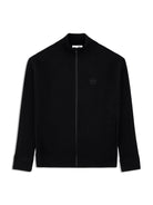 - 1x1 rib-knit stand-up collar, cuffs, and hem