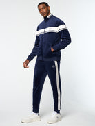 A premium take on a Tacchini classic, the Damarindo Velour Track Jacket is crafted from plush velour for a luxurious feel. Featuring our renowned double stripe at the chest, sleeves, and collar, this elevated full-zip track jacket is complete with spacious handwarmer pockets, rib-knit trims, and our iconic 'ST' monogram logo embroidered at the left chest.