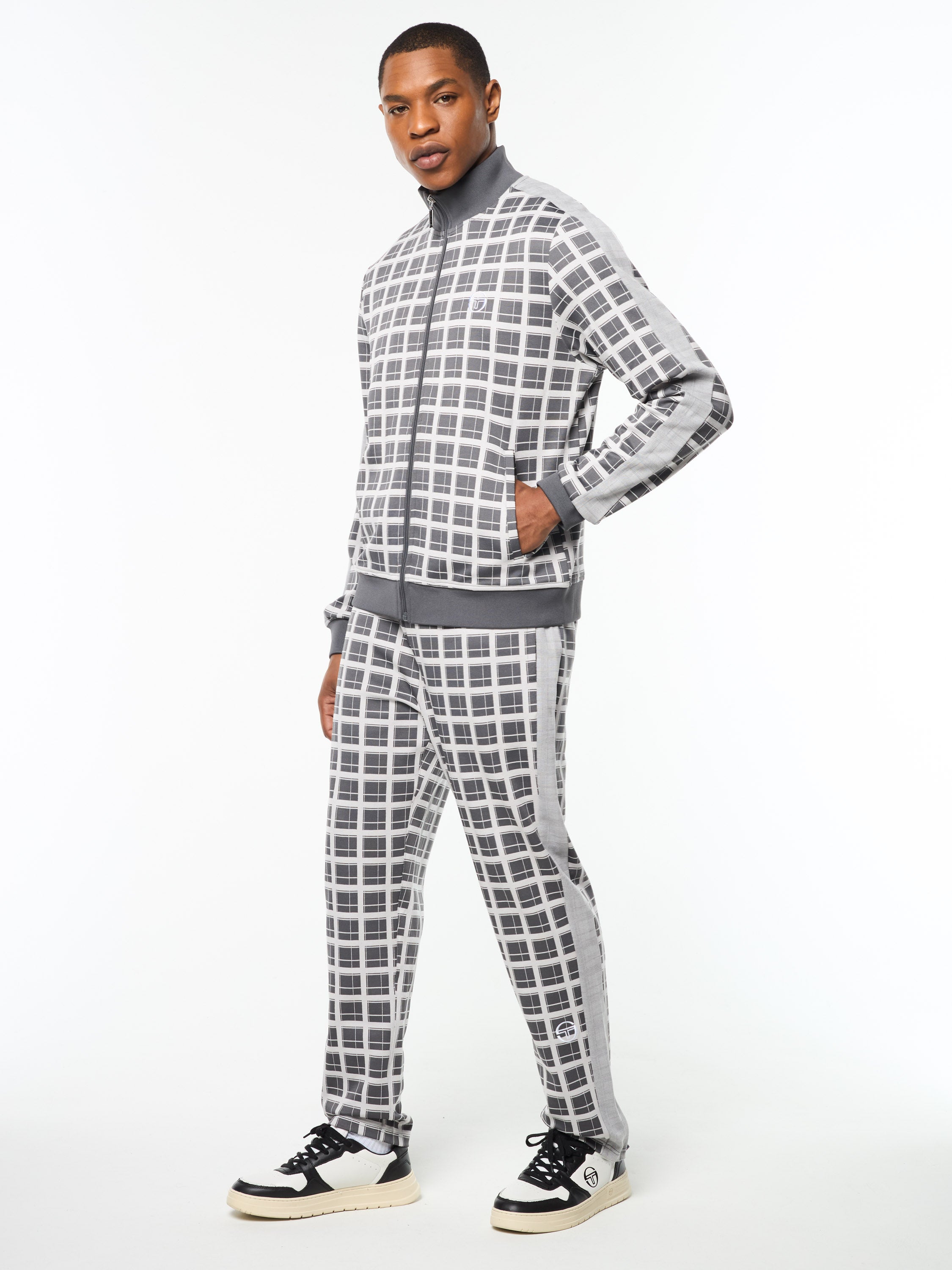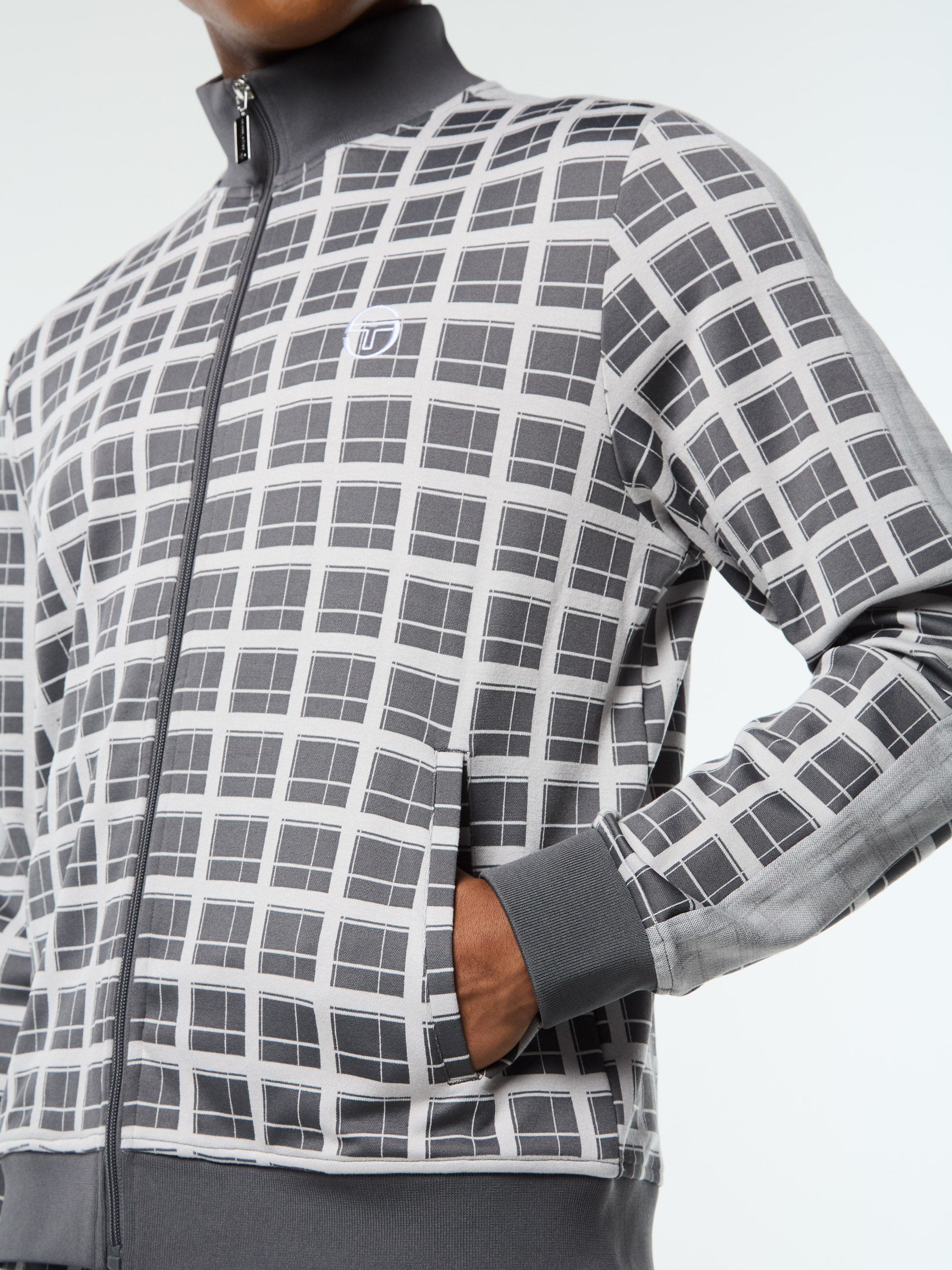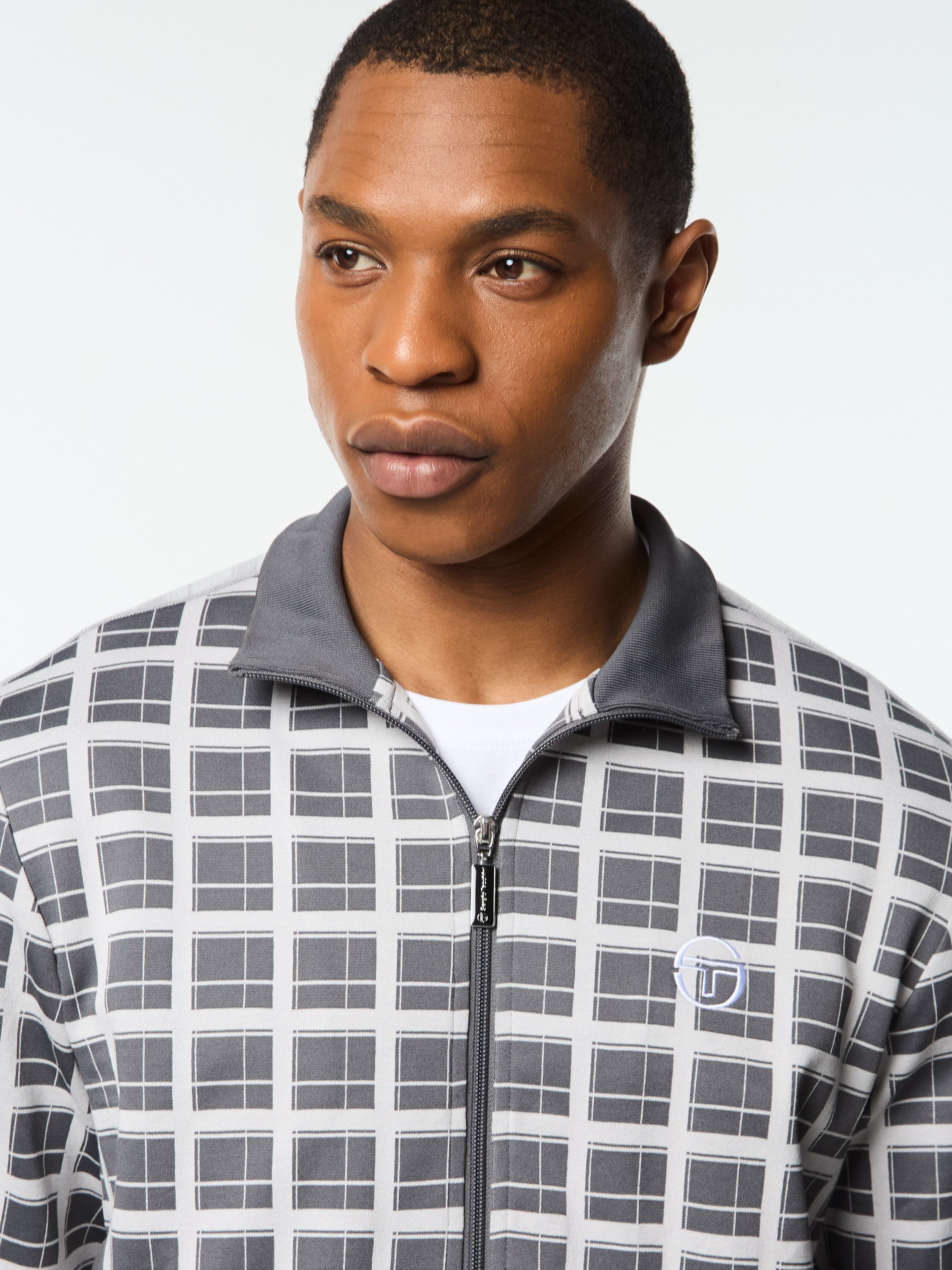 A fresh spin on a long-time Tacchini classic. The Damarindo Check Track Jacket features an all-over custom jacquard check pattern derived from our iconic Damarindo double stripe for a breezy, youthful vibe. Panels down the sleeves showcase the fabric's reverse bird's eye back construction, while solid rib-knit trims complete the look.