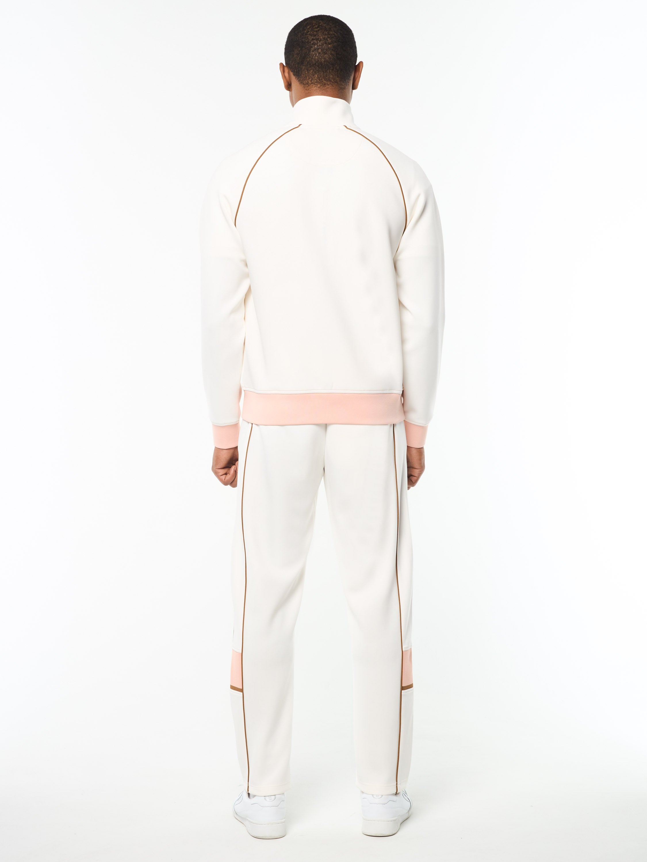 Built for movement, styled for the moment. The Lago Track Jacket is crafted from smooth-to-the-touch diver fabric that's breathable and flexible with a springy 4-way stretch—ready for wherever the day takes you. Blending sleek performance with retro sport vibes, this premium track jacket is complete with a rib-knit double stripe panel at the chest, zip-secured pockets, and contrast trims.