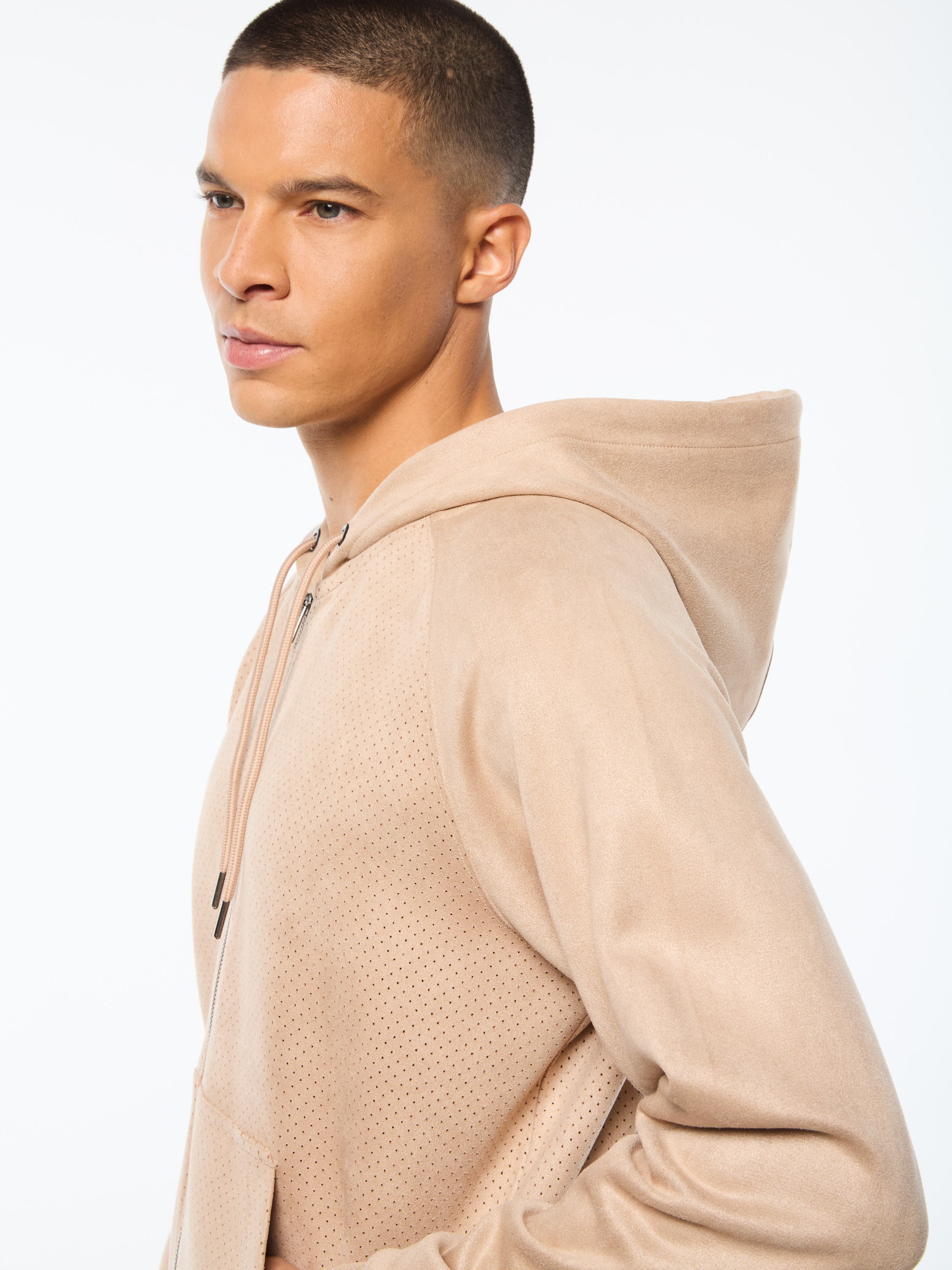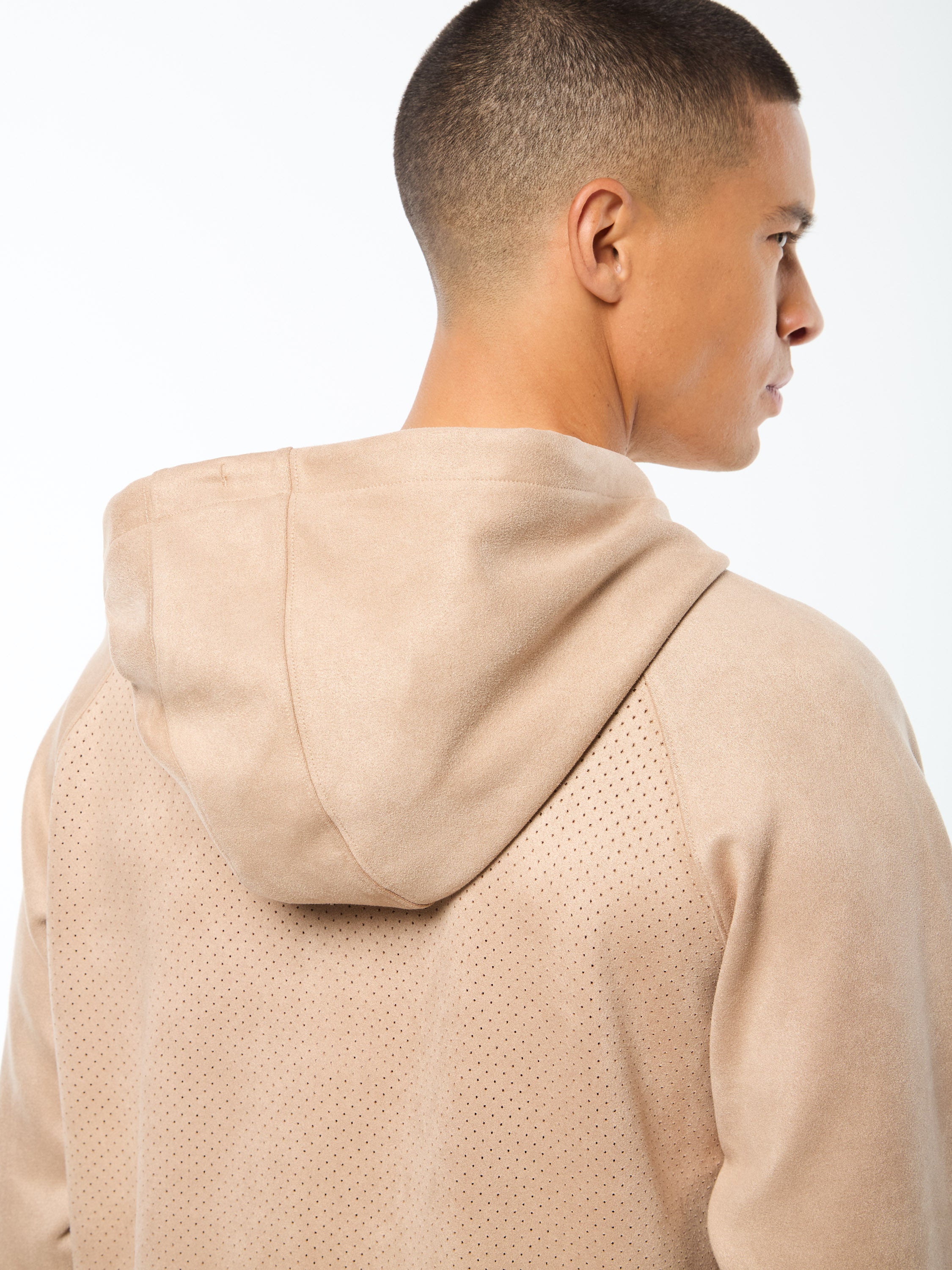 - Premium faux suede hoodie