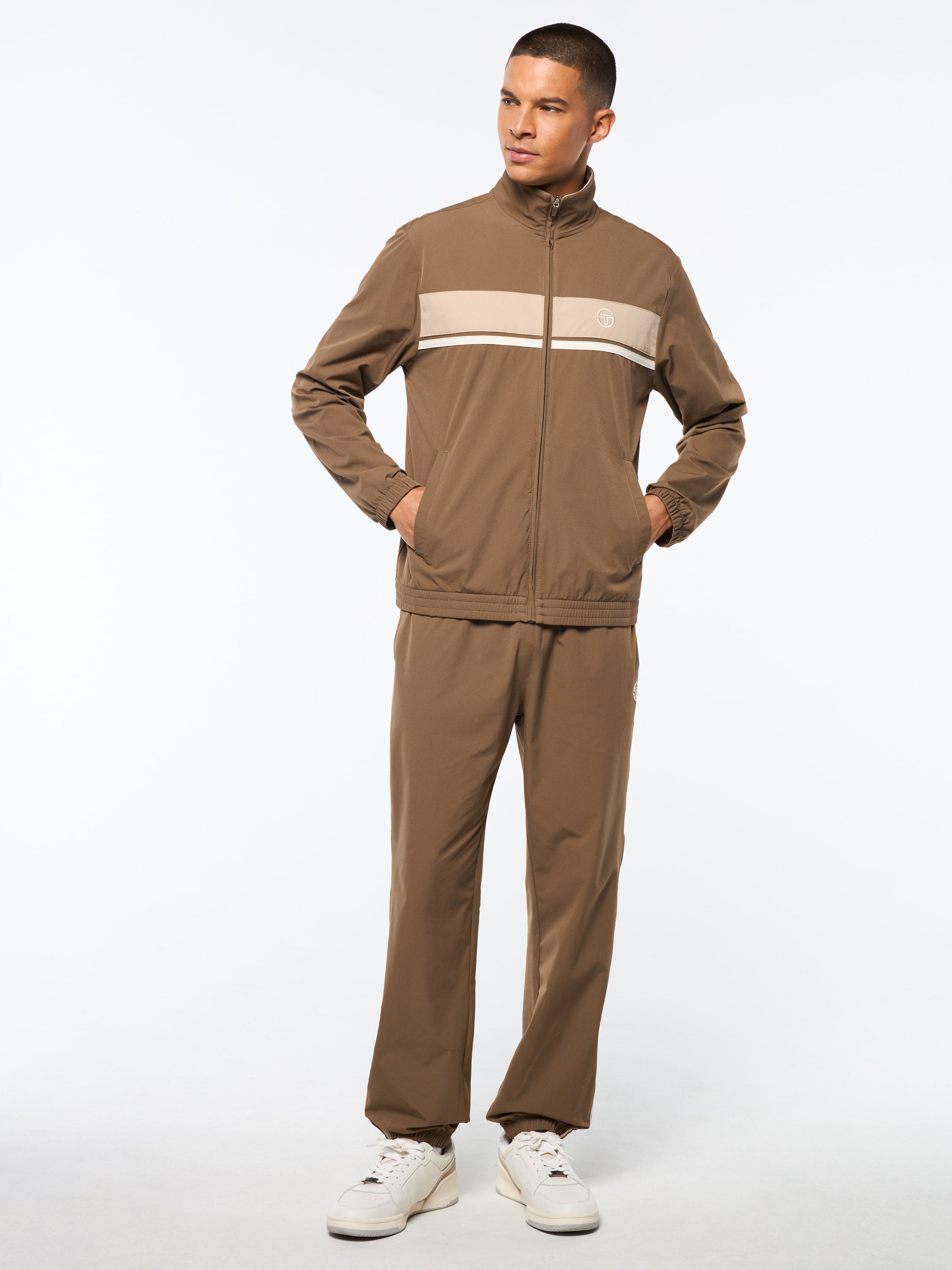 A spin in a long-time Tacchini classic, the Damarindo Nylon Track Jacket  is crafted now in Nylon fabric for a premium comfort and innovation. Featuring our distinctive double-stripe and iconic 'ST' monogram logo. Complete with spacious pockets, this premium nylon track jacket is a continuously essential from in and out the court, travel or lounge.