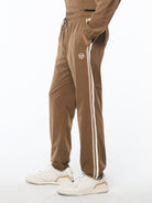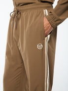 A spin in a long-time Tacchini classic, the Damarindo Nylon Track Pant is crafted now in Nylon fabric for a premium comfort and innovation. Featuring our distinctive double stripe and iconic ‘ST' monogram logo, and finished with spacious pockets and a comfortable drawcord waistband.