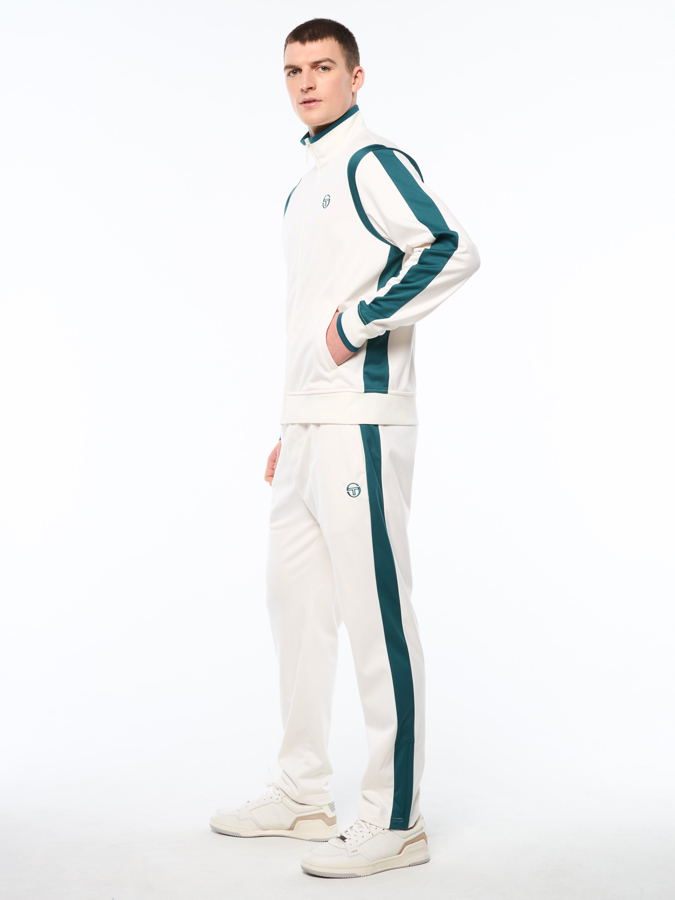 Rooted in Sergio Tacchini heritage, the Massimo Track Jacket brings classic sport styling into a clean, modern silhouette. Crafted in our new lightweight brushed diver fabric. Featuring a high-neck design for sophistication and finished with a full-zip front and functional pockets for everyday wear. It balances sports performance with modern style, a versatile piece for both on and off the court.