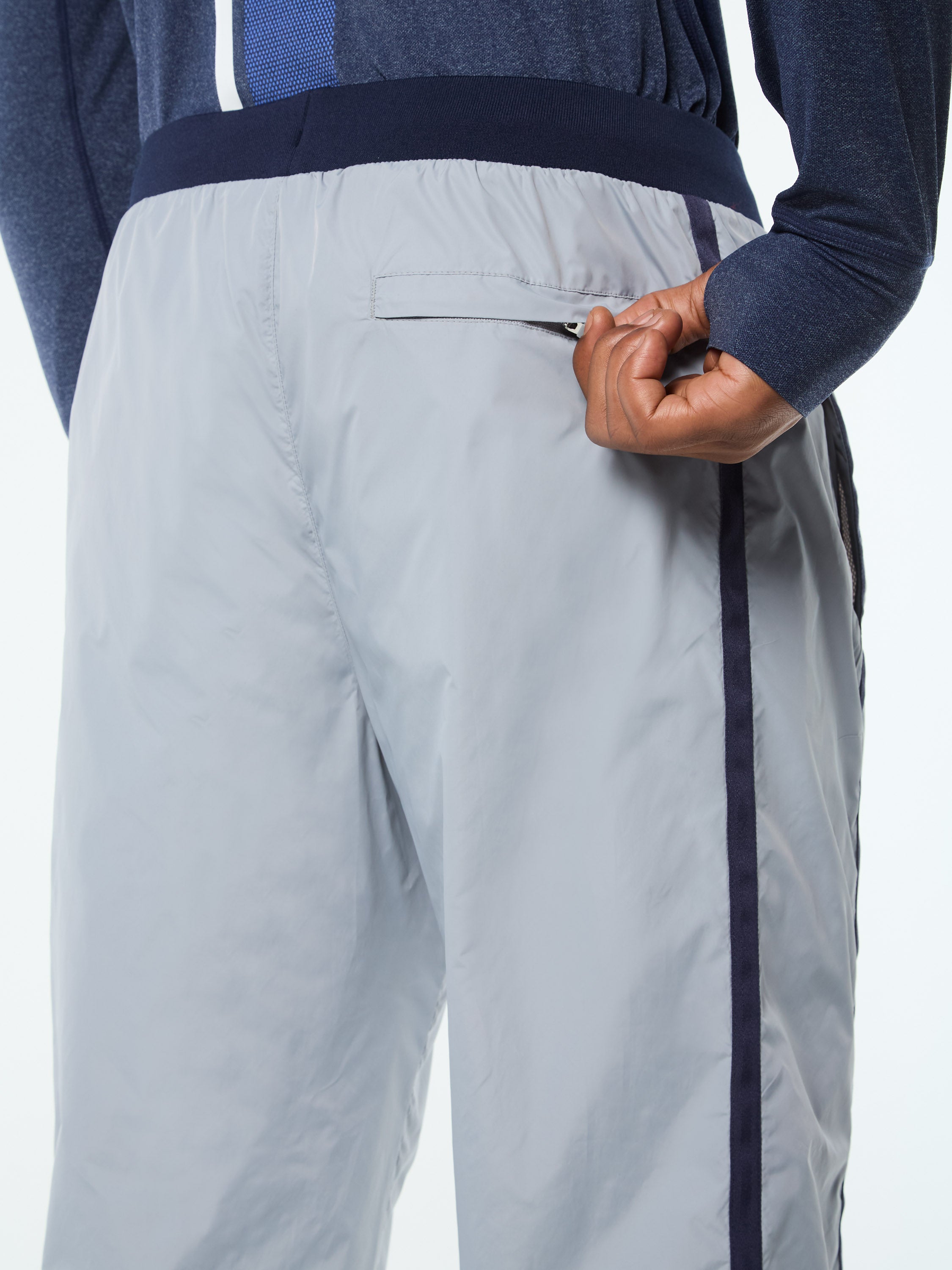 Sport meets statement. The Campo Court Track Pant is crafted from crisp and lightweight nylon taffeta with a breathable mesh lining—built to move on and off the court. Contrast taping down the legs delivers a sporty punch, while a comfortable rib-knit waistband ensures a secure fit.