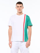 A fresh take on Sergio Tacchini heritage, the Classico T-Shirt delivers clean, everyday style with a bold Italian-inspired edge. Part of our Italian Flag Capsule is designed in a crisp Brilliant White silhouette, it features a vertical contrast stripe detail with the Italian flag colors for a sharp, modern finish. Subtle branding completes the look—easy to wear on its own or layered for an elevated casual set.