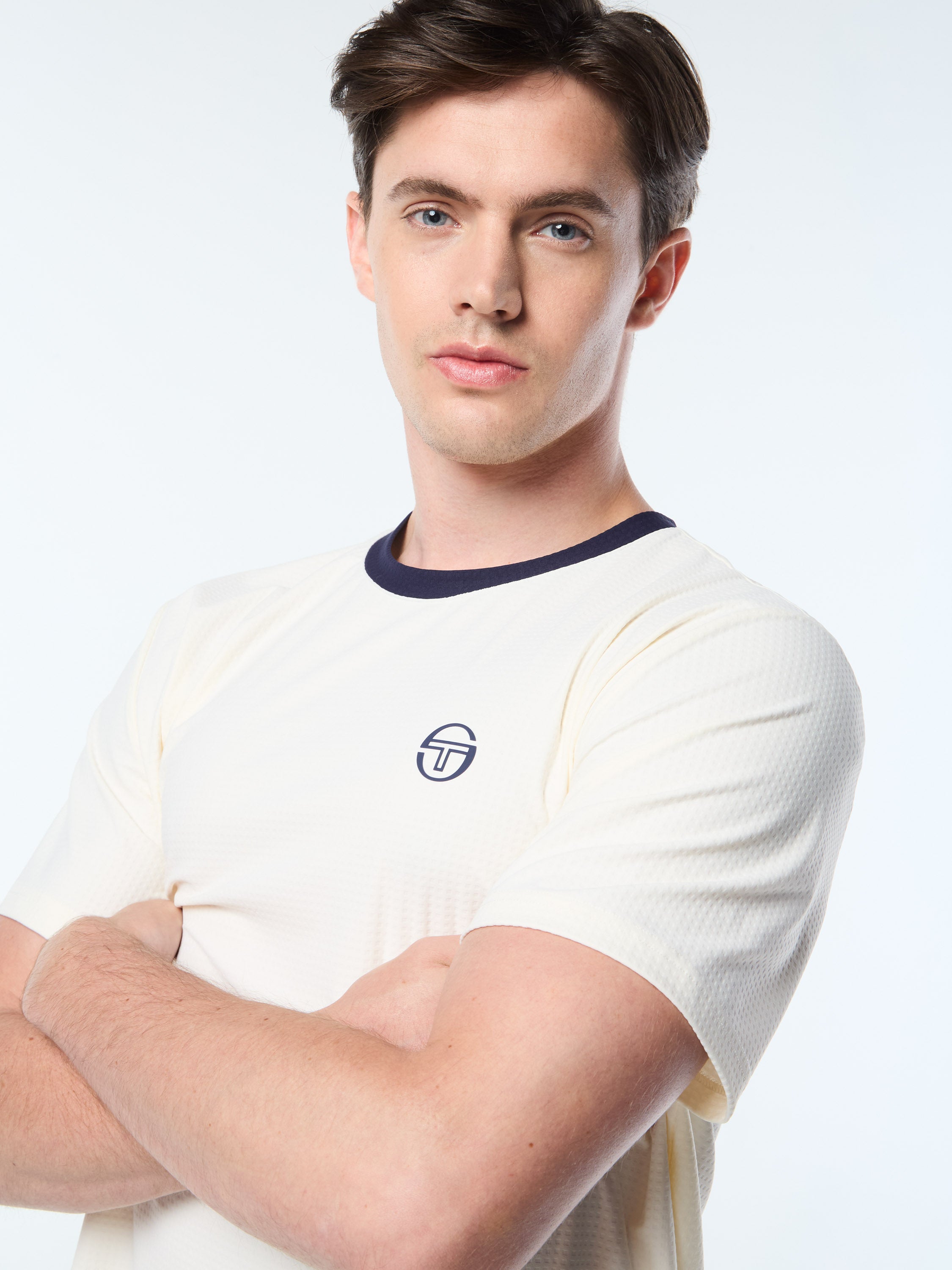 Engineered for all-day performance, the Grata Active T-Shirt is cut from a lightweight grid-knit stretch fabric that's breathable, moisture-wicking, and built to move with you. A contrast collar adds modern sport style, while our signature 'ST' monogram logo keeps it classic.