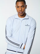 An elevated spin on classic sportswear, the Paco Track Jacket is crafted from lightweight performance stretch nylon to keep you cool and moving freely through any workout. Featuring tennis net-inspired elastic mesh trim down the sleeves for extra style points, this full-zip track jacket is finished with a hidden zip vent pocket at the left wrist.Pair with the Paco Track Pant for the full fit. (Sold separately)