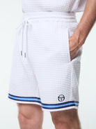 Effortless polish with a textured twist. The Chiaro Cabana Short is crafted from a premium waffle knit for soft texture and laid-back structure. Topped with an elasticated drawstring waistband for a secure fit, these shorts are finished with contrast stripe taping at the hem and rear pocket for a signature sport-inspired touch.