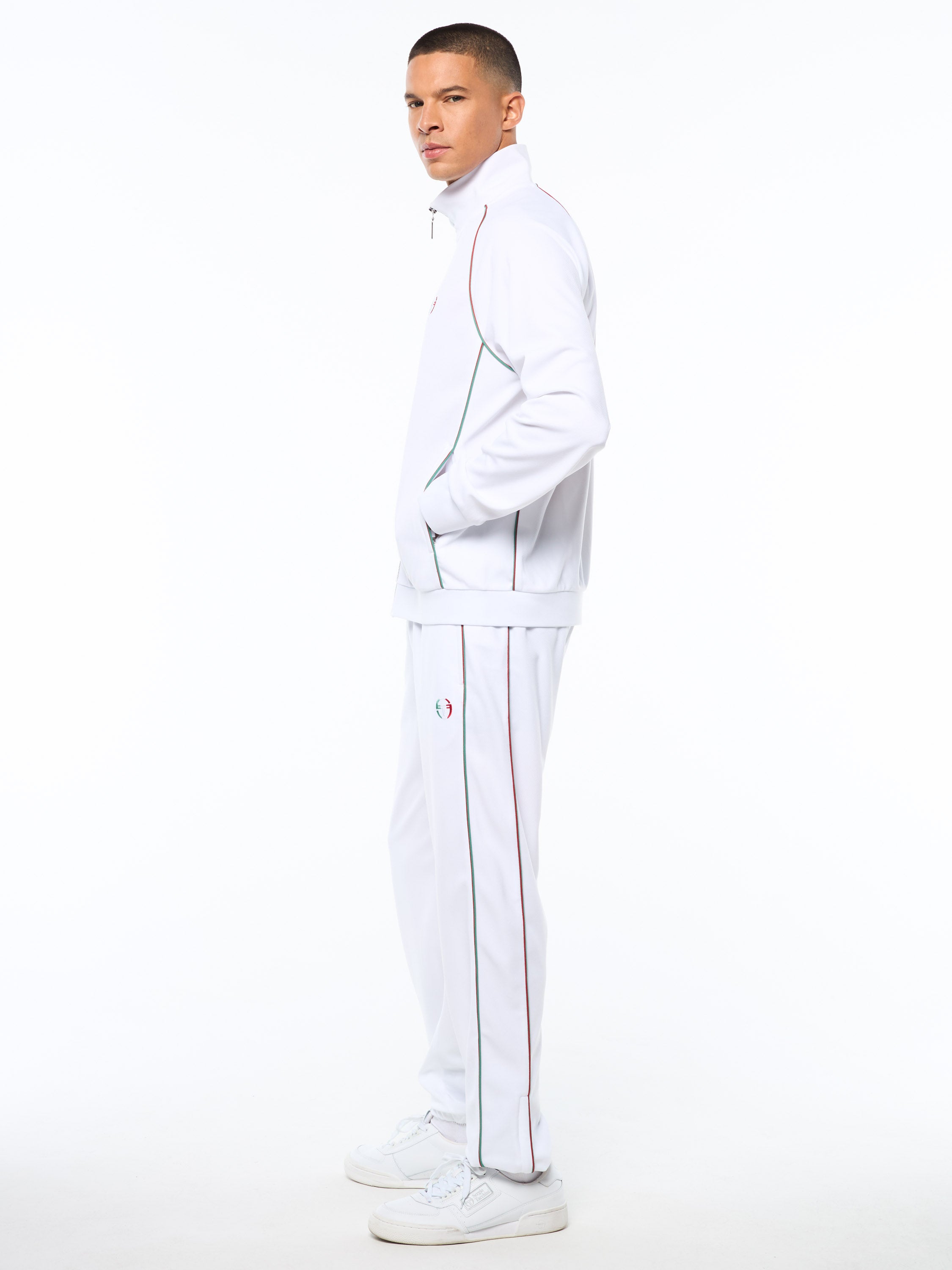 From our Italian Flag Capsule, the Eredita Track Jacket is crafted from durable track twill and designed with a clean full-zip silhouette and classic stand collar. Finished with signature Italian flag colors detailing and subtle Sergio Tacchini logo at left side chest, it delivers a refined heritage look.
