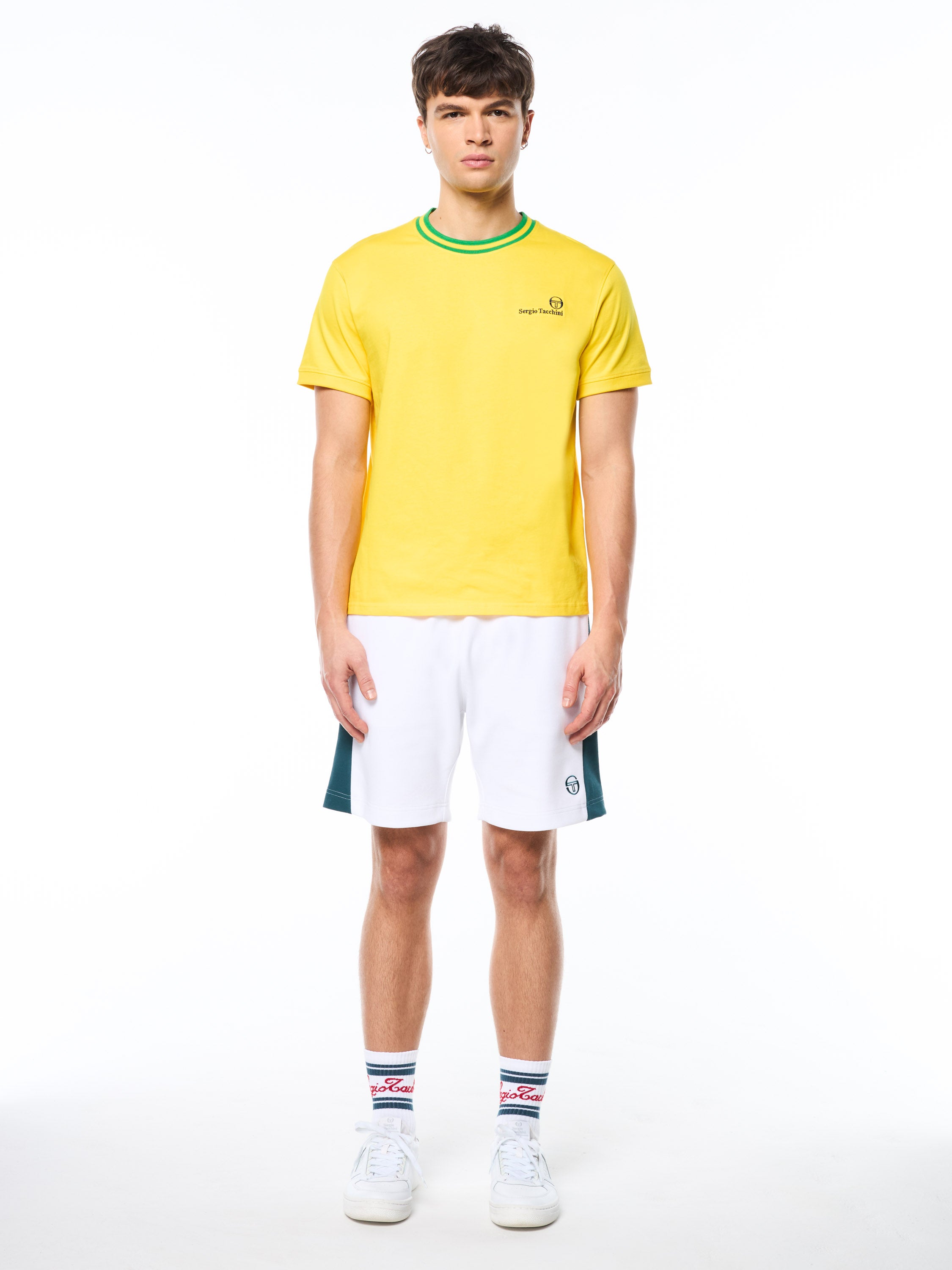 The World Champion T-Shirt is part of a limited-edition World Champion collection. Made of super soft and comfortable cotton, this elevated T-Shit features our iconic Sergio Tacchini logo and our 'ST' monogram logo at the left side chest, and finish with multi color stripes details at the rib knit collar.