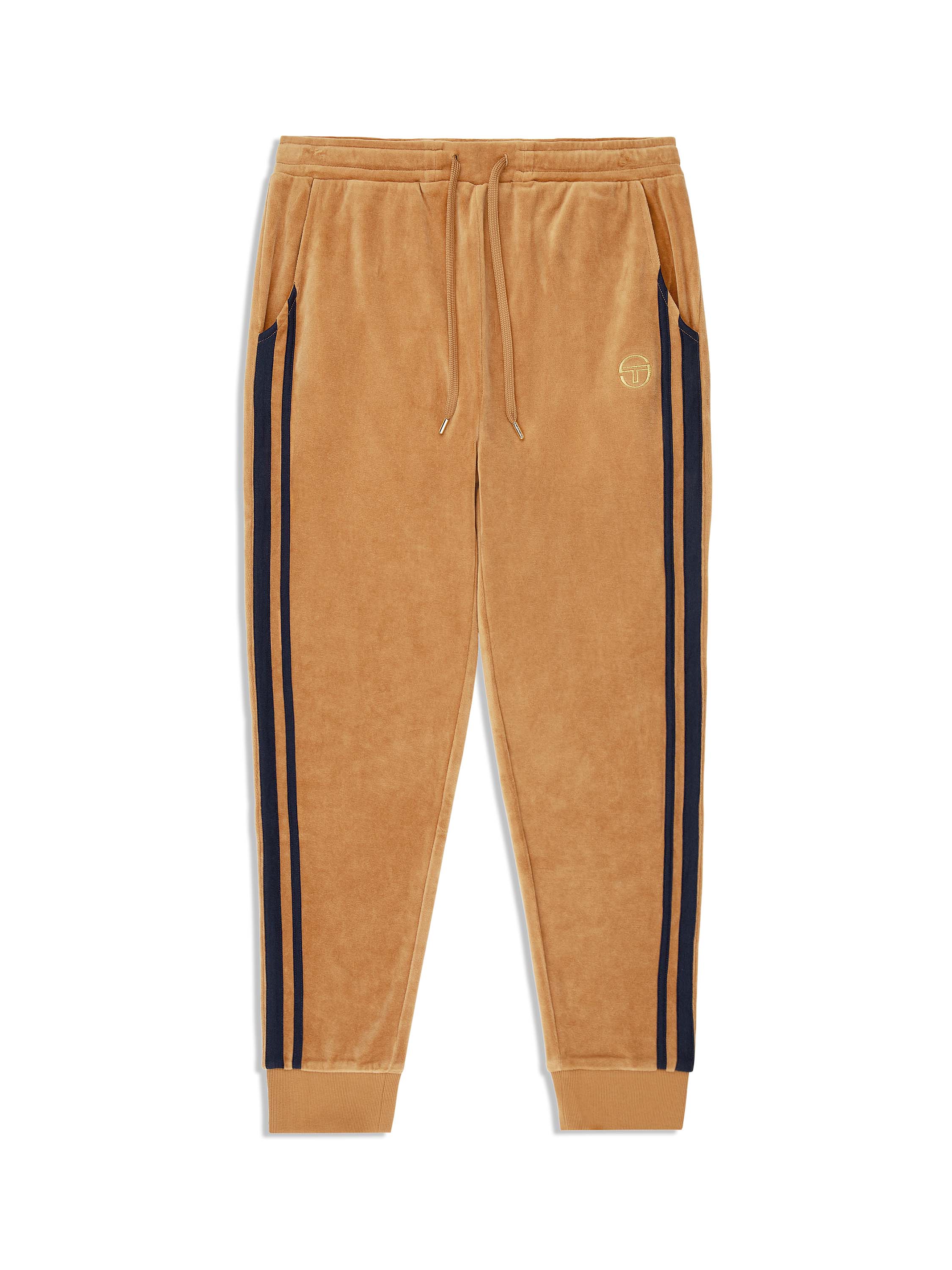 Damarindo Velour Track Pant- Almond/ Maritime Blue