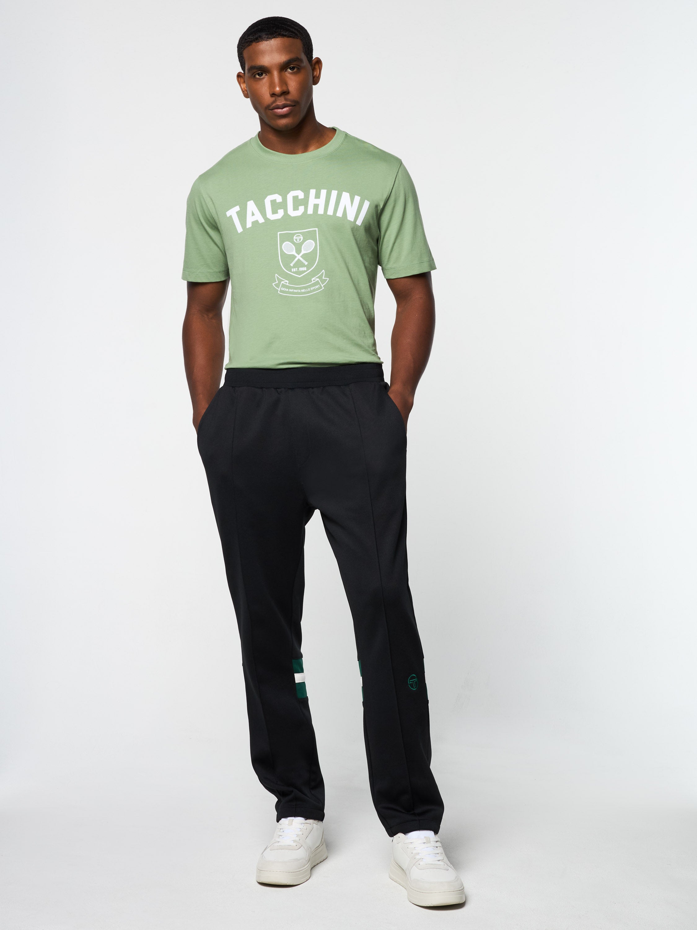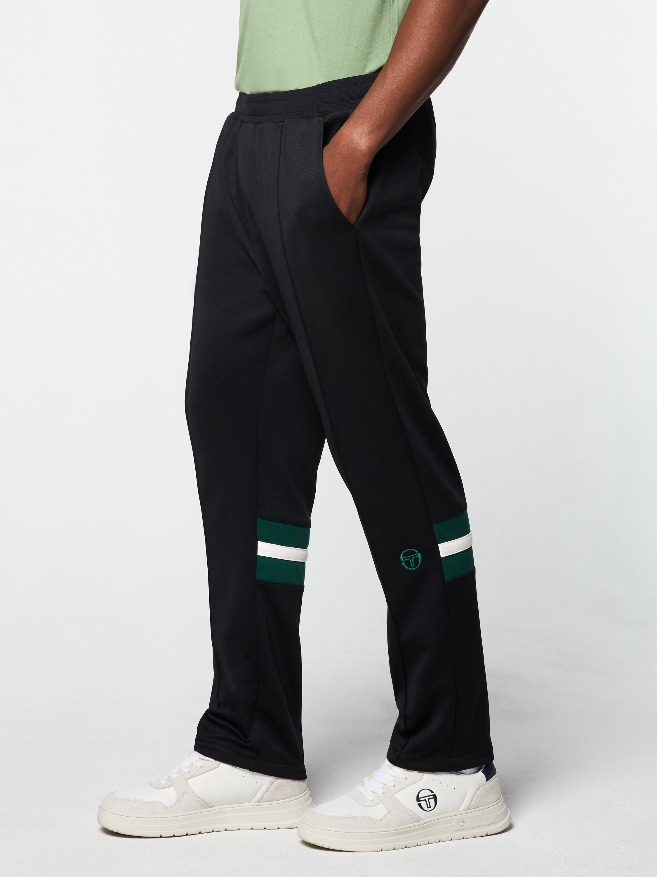 An elevated take on classic sportswear, the Rimini Track Pant is made of soft poly-cotton with an adjustable drawstring waistband for on and off-court comfort. Featuring contrast stripe paneling at the lower legs, the pants are equipped with spacious pockets, pintuck detailing down the front, and our iconic 'ST' monogram embroidered at the left leg.Pair with the Rimini Track Jacket for the full fit. (Sold separately)