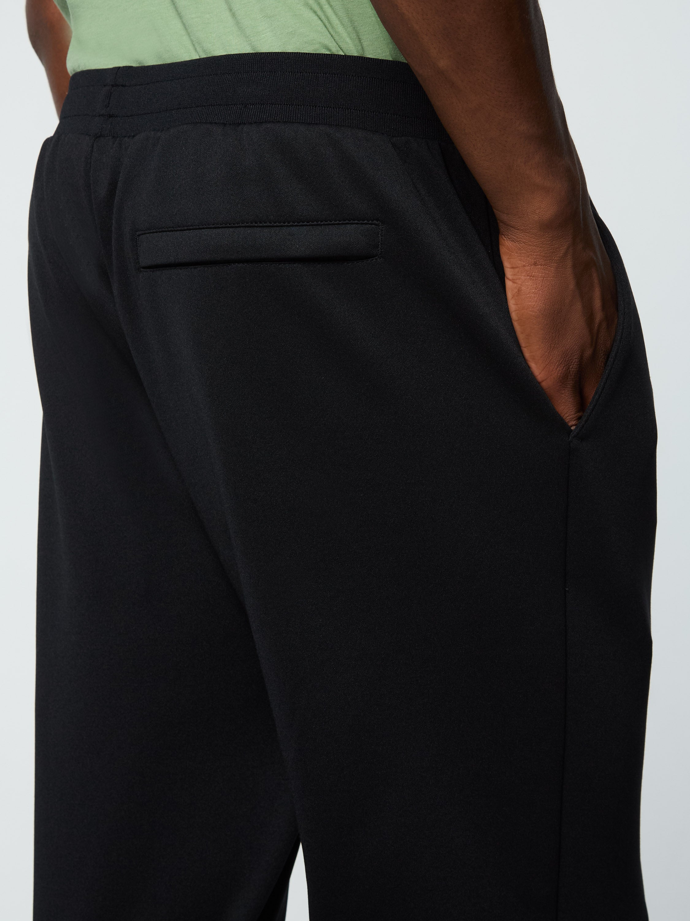 - Rib-knit elasticated waistband with internal tipped drawcord
