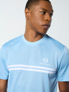 A performance spin on classic sportswear. Crafted from breathable mesh fabric to keep you cool when practice heats up, the Giacomo T-Shirt features our distinctive double stripe taping across the chest and is topped with a soft rib-knit collar.Pair with the Ludovic Mesh Short for the full fit. (Sold separately)