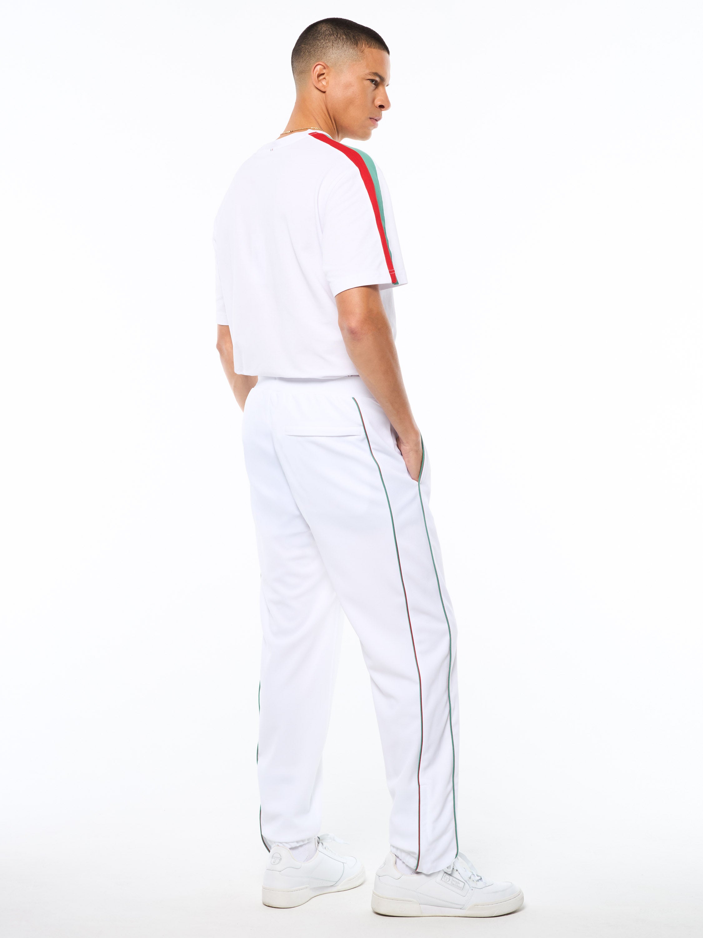 From our Italian Flag capsule, the Eredita Track Pant is crafted from durable track twill with a clean athletic fit for everyday comfort and easy movement. Finished with signature Italian flag colors detailing and subtle branding, with Sergio Tacchini logo on left tight.