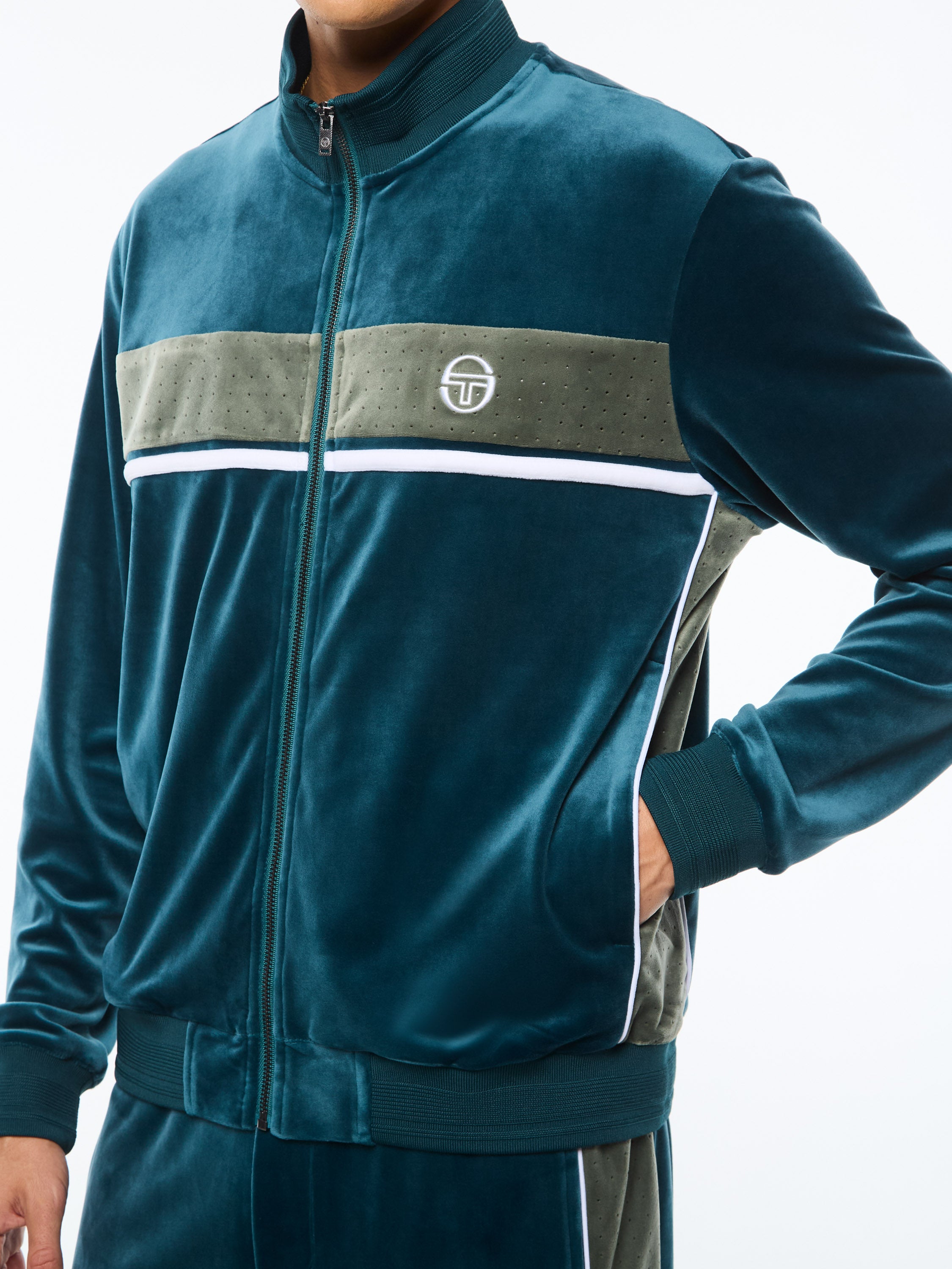 The Forato Velour Track Jacket delivers modern track style with Sergio Tacchini's iconic heritage at its core. Crafted from soft luxurious velour with a smooth stretch feel and perforated combo detailing, it brings a refined edge to classic athletic styling.
