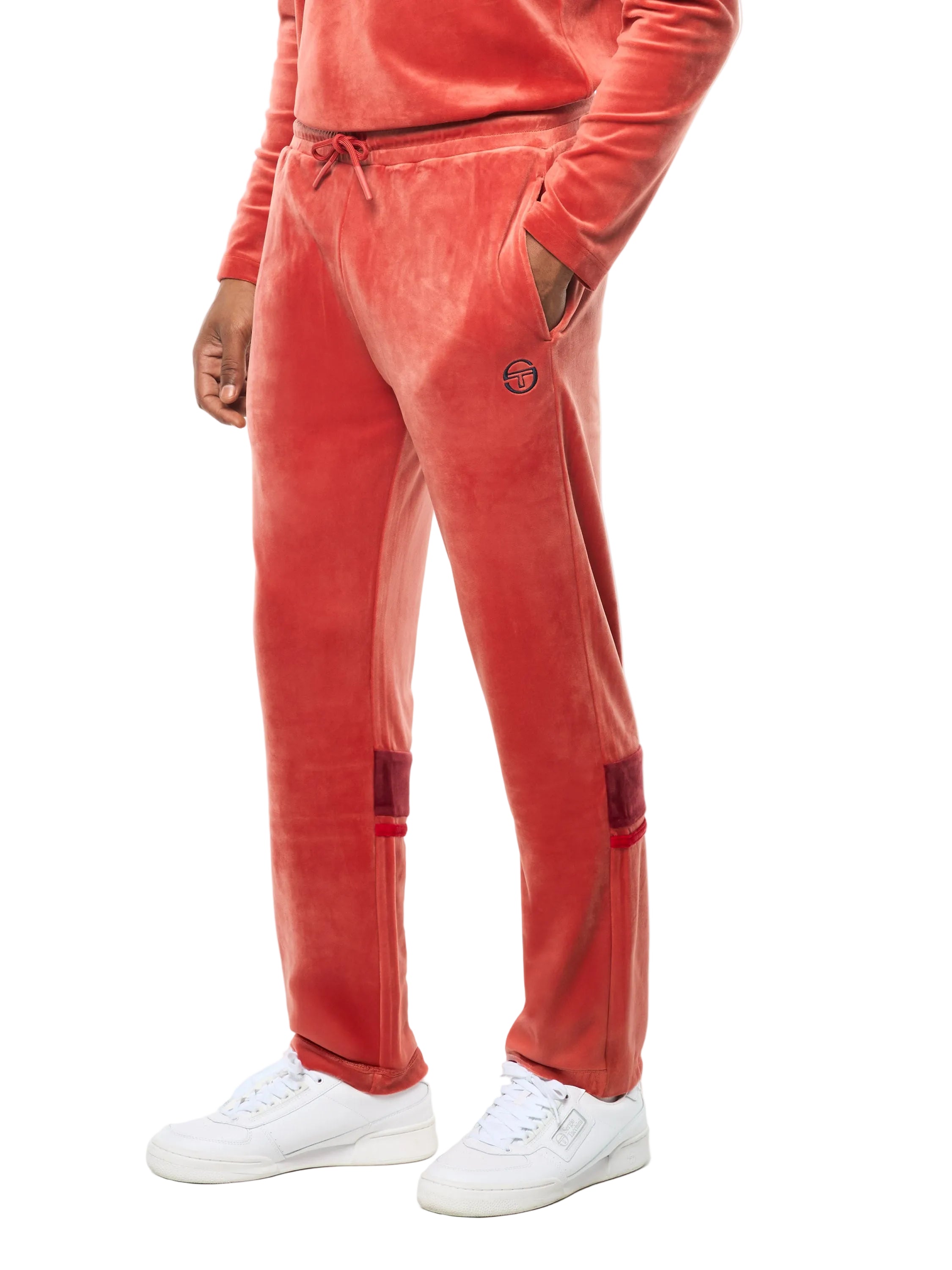 A premium take on a Tacchini classic, the Damarindo Velour Track Pant is crafted from plush velour for a luxurious feel. Topped with a comfortable drawstring waistband, these elevated track pants are complete with double stripe taping at the rear lower legs, spacious pockets, and our iconic 'ST' monogram logo embroidered at the left thigh.