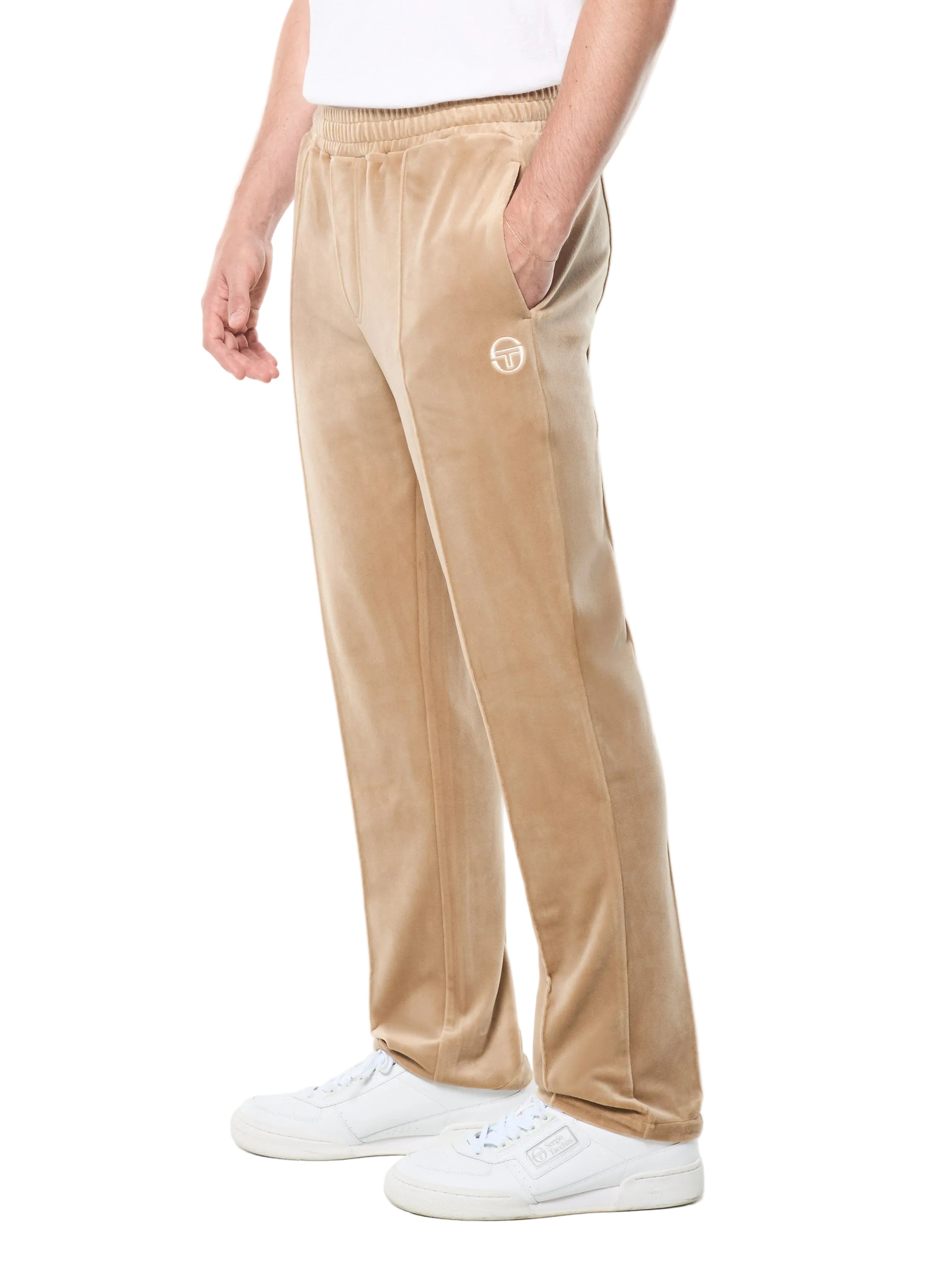 The Viaggioa Track Pant elevates classic sportswear into luxe territory. Crafted from plush stretch velour that feels super soft against your skin, these premium track pants feature refined pintuck detailing down the legs and an embroidered 'ST' monogram at the thigh. A nod to the golden age of courtside style—made modern for everyday wear.