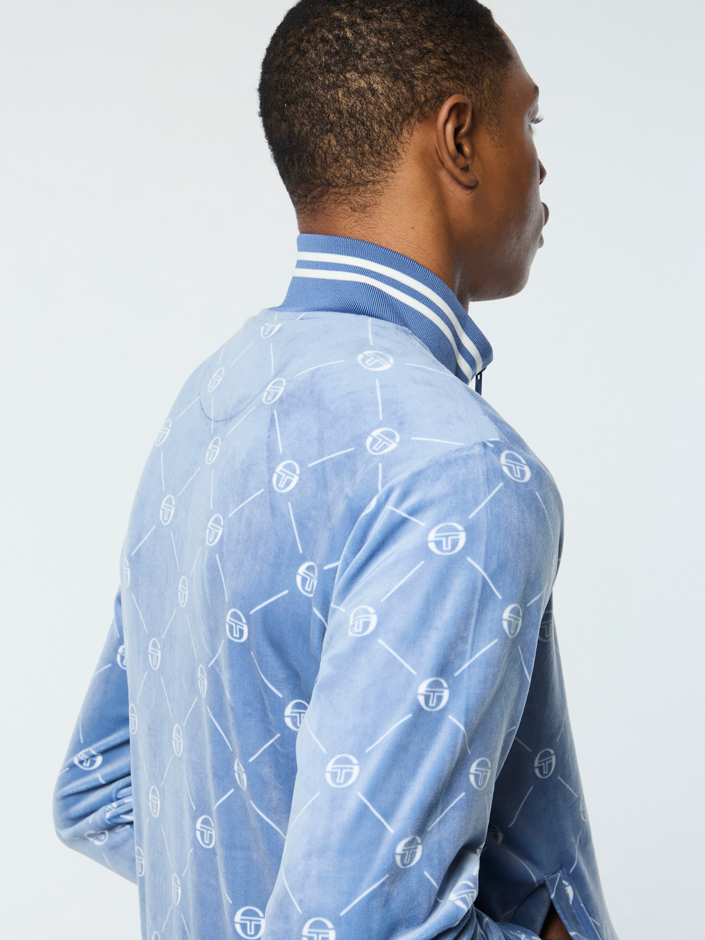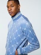 Crafted from luxurious printed velour, our Cosimo Track Jacket features an all-over 'ST' monogram motif and double stripe tipping accents for an elevated look. Exuding sophistication and comfort, this premium full-zip track jacket transitions seamlessly from everyday outings to nightlife vibes.Pair with the Cosimo Velour Track Pant for the full fit. (Sold separately)
