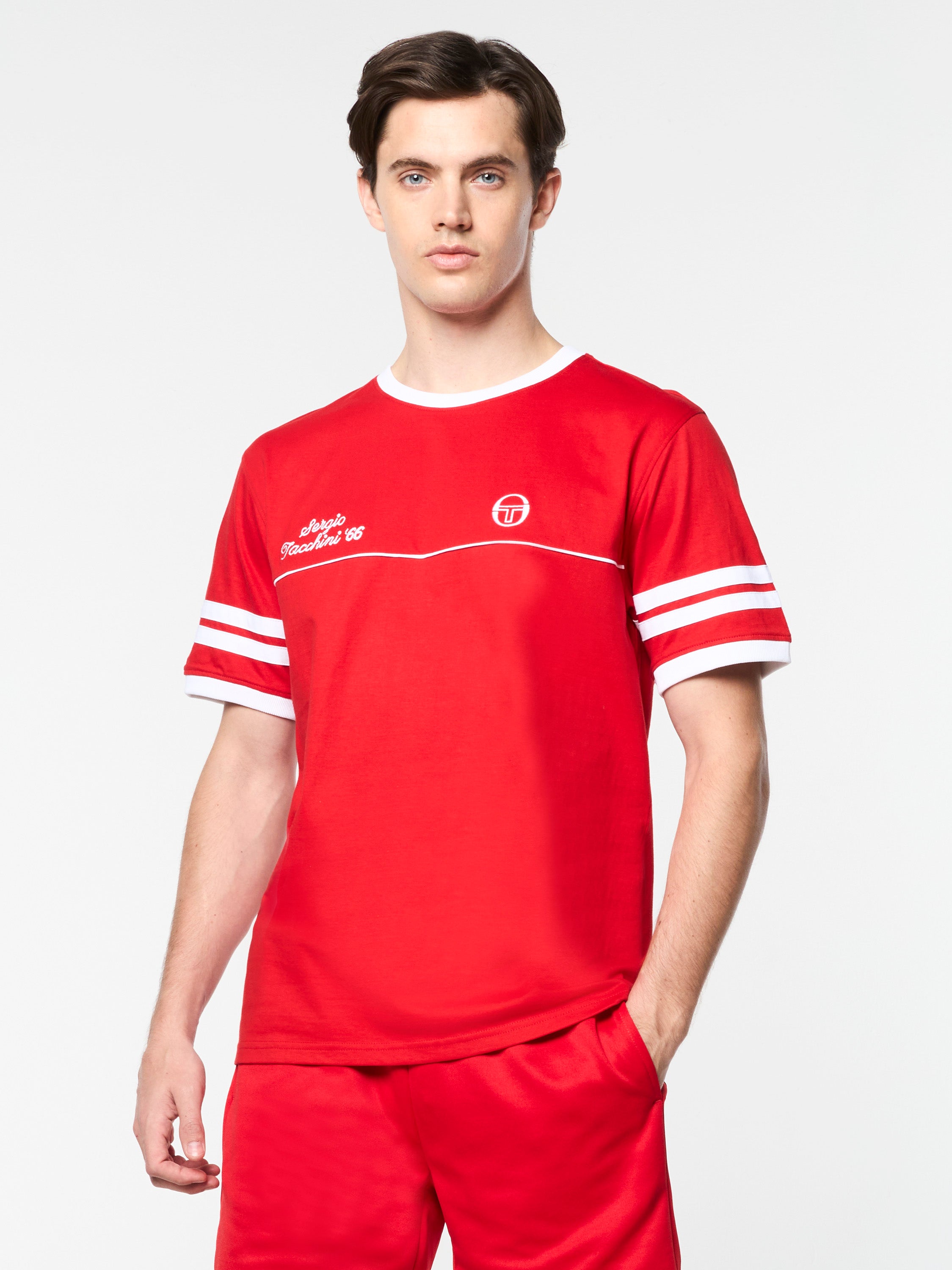 • Embroidered "Sergio Tacchini '66" script logo at right chest