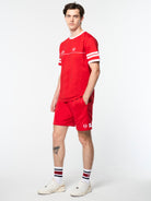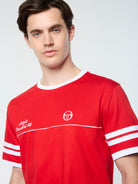 Made of pure cotton, the Orion Davis Ringer Tee features a contrast rib-knit collar and cuffs with piping detail across the front for that retro ringer look. An easy-to-wear classic, the tee is complete with an embroidered "Sergio Tacchini '66" script logo and 'ST' monogram at the chest.Pair with the New Orion Short for the full fit. (Sold separately)