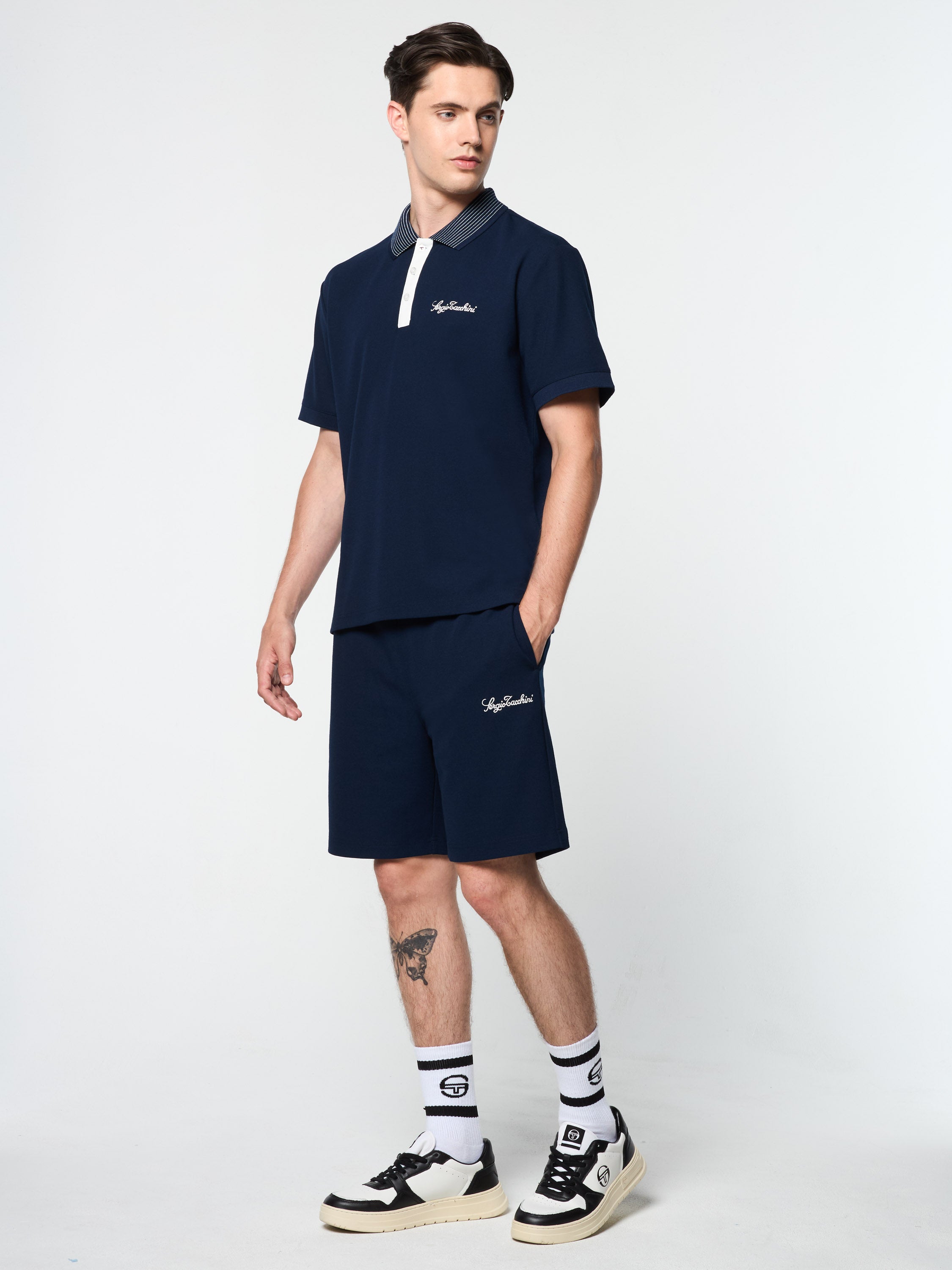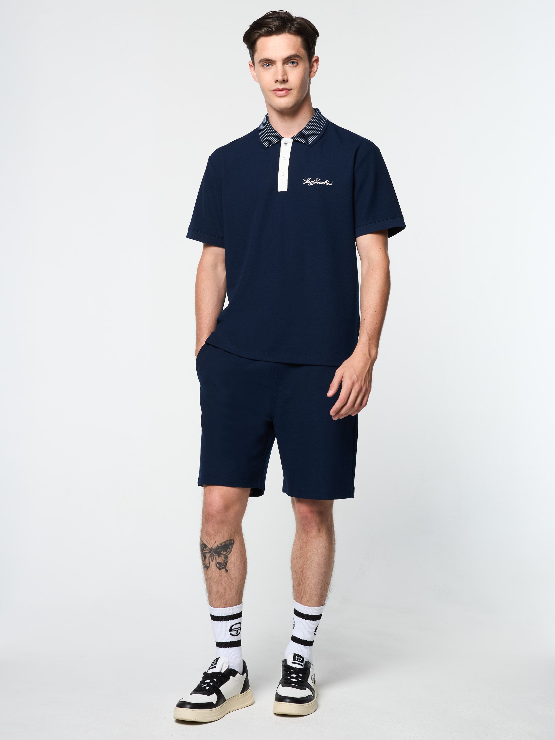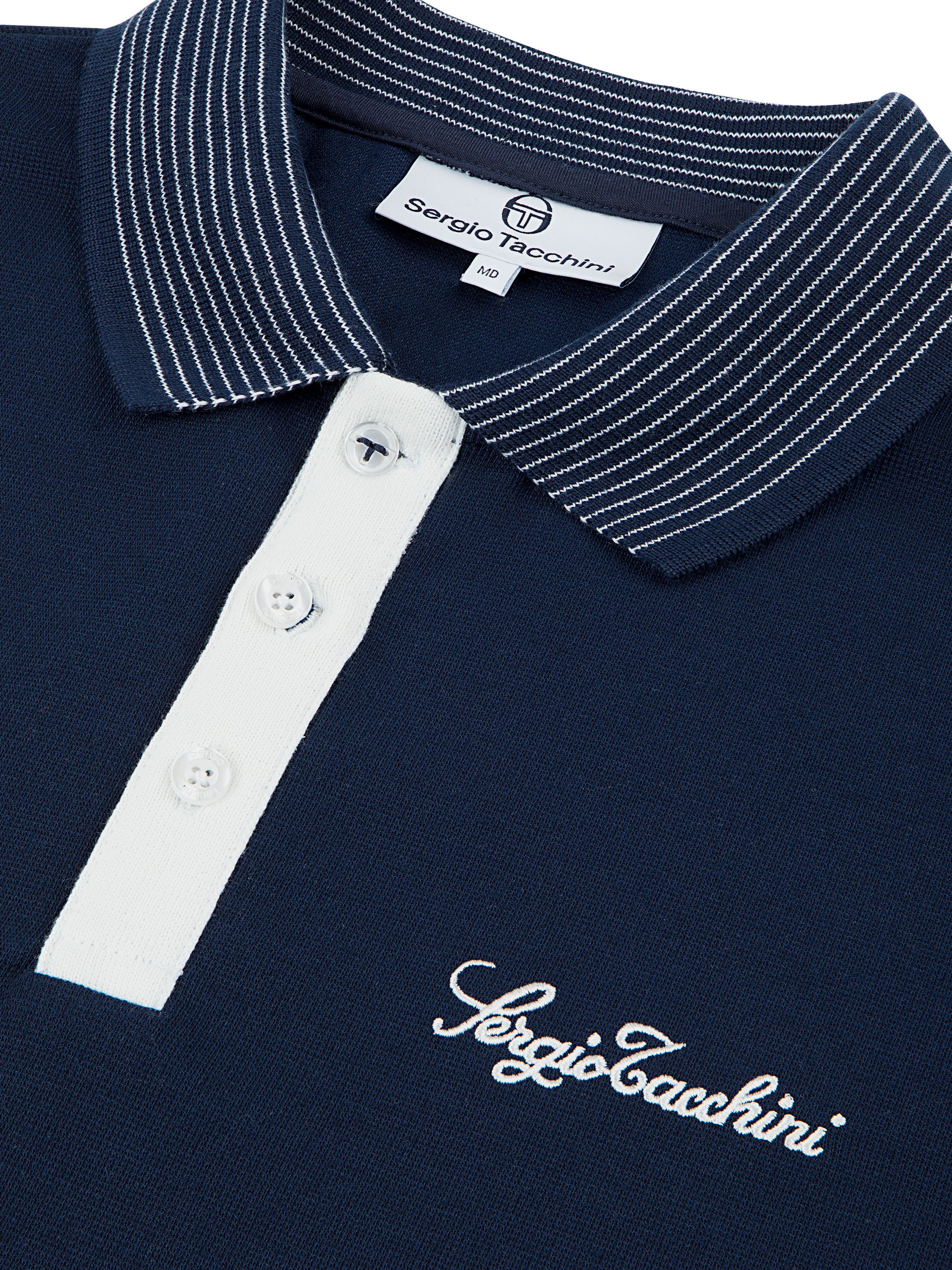 - Embroidered Sergio Tacchini script logo at left chest