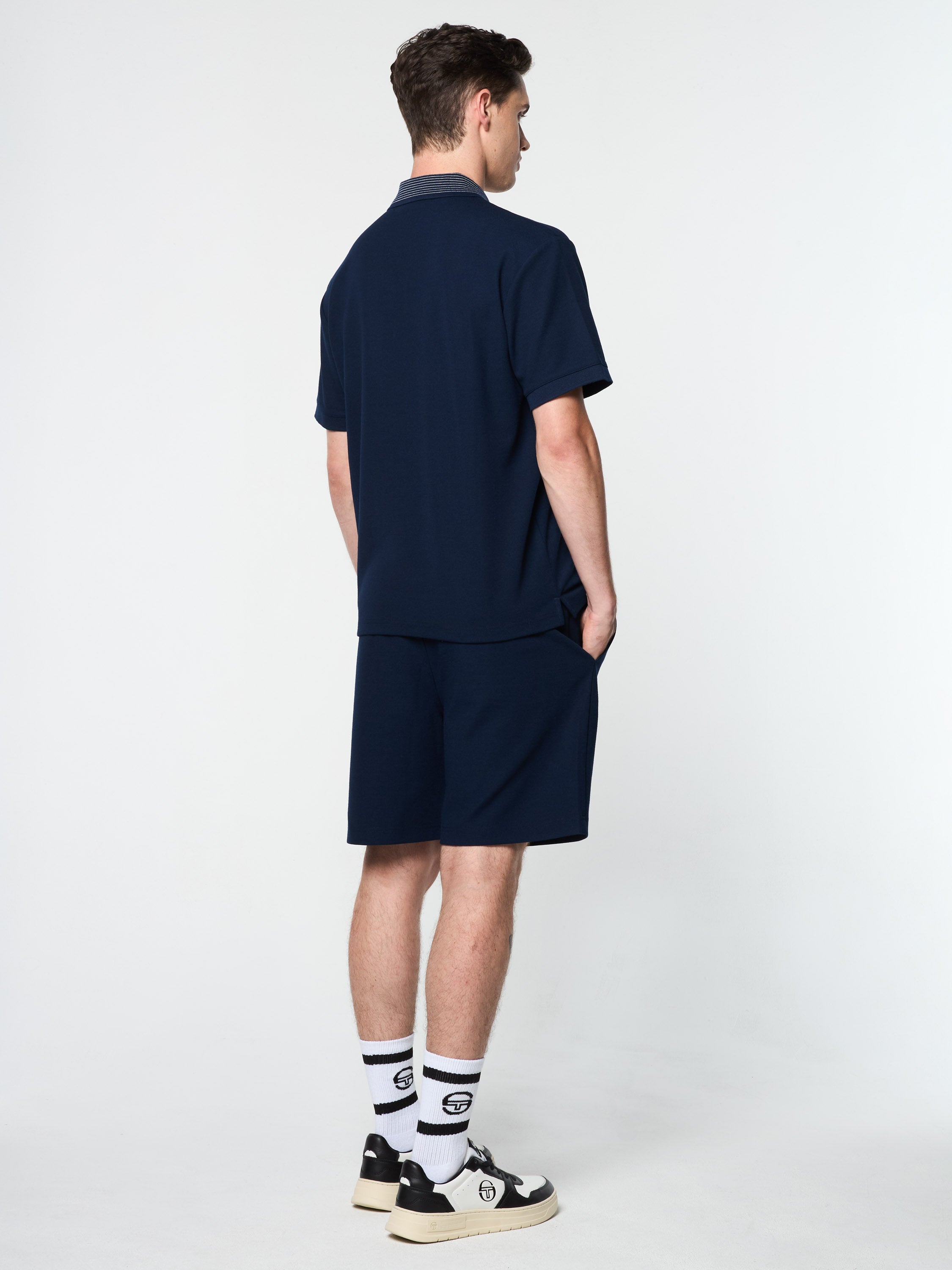 Crafted from luxe poly-blend piqué fabric with a subtle stretch, the Suveniri Polo features an embroidered Sergio Tacchini script logo at the chest for an elevated touch. Finished with a contrast placket and jacquard striping at the rib-knit collar, this premium polo is part of our seasonal "Souvenir" capsule, inspired by European travel and discovery.