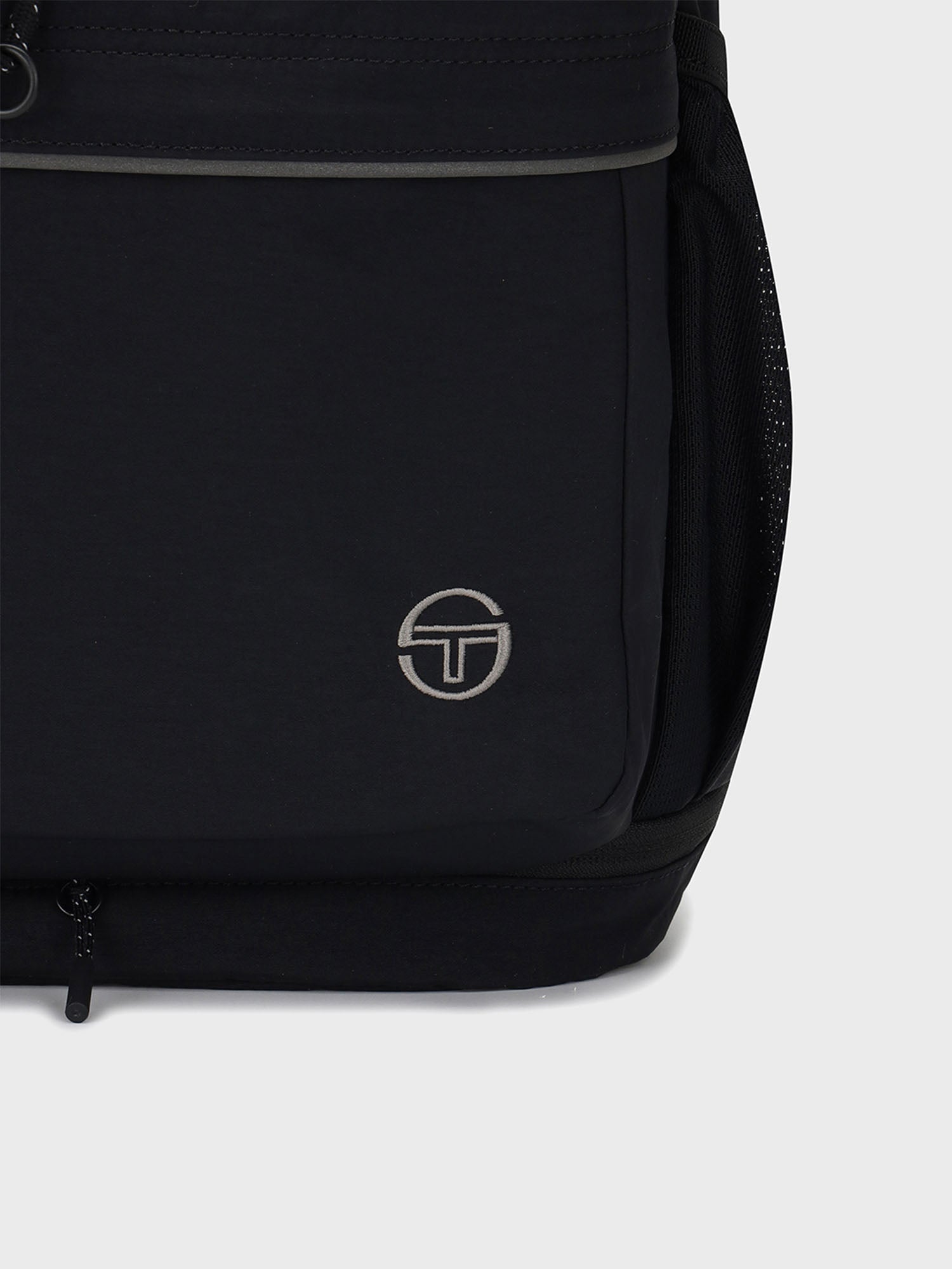 - Front zip pocket w/ 'ST' monogram embroidered at left