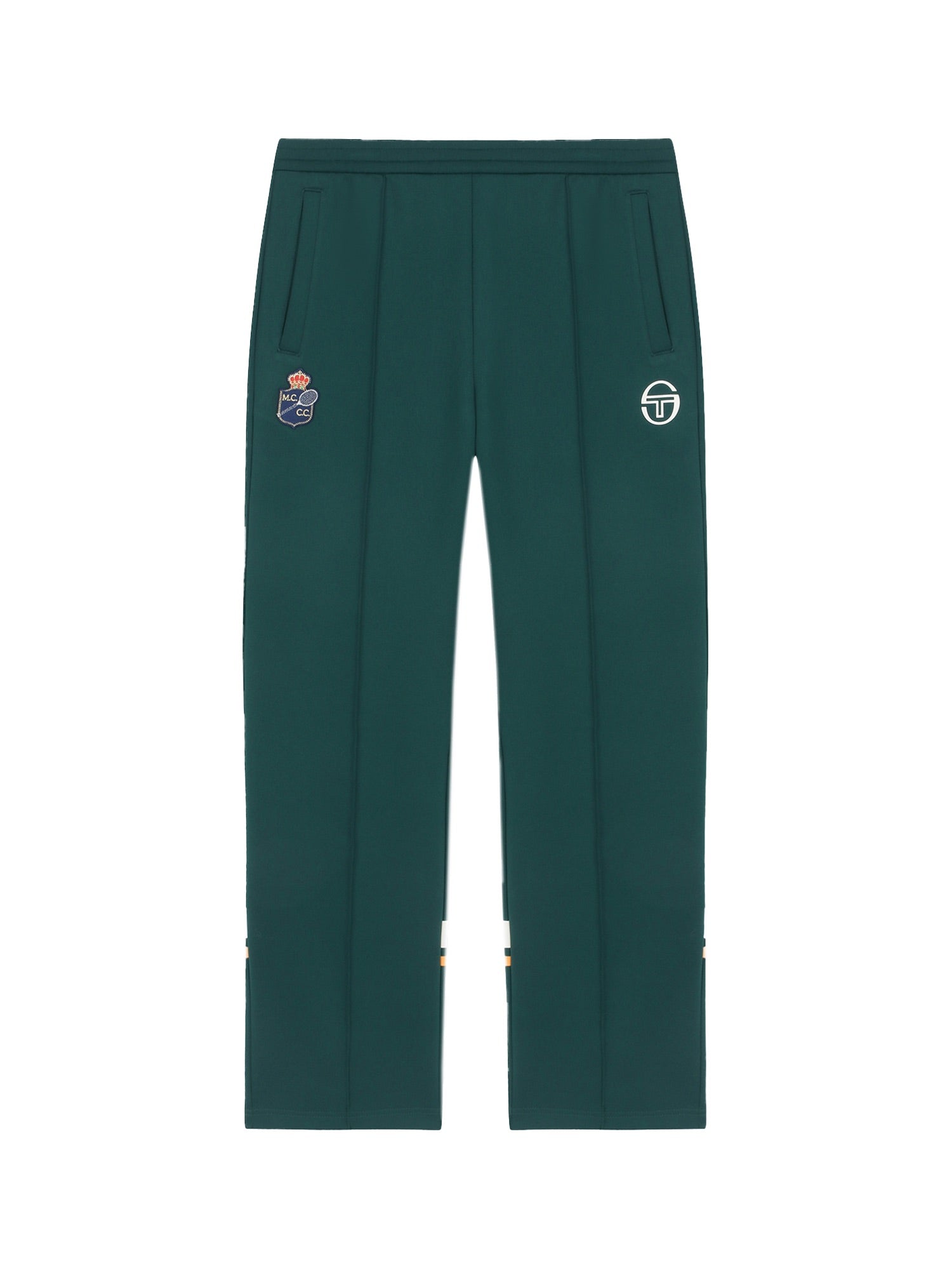 The MC Baseline Staff Pants are part of our dedicated collection designed for staff at the annual Rolex Monte-Carlo Masters Tournament. Topped with a comfortable drawstring waistband, these sporty track pants feature double stripe accents, seam detailing down the legs, and Monte Carlo Country Club's prestigious crown logo.