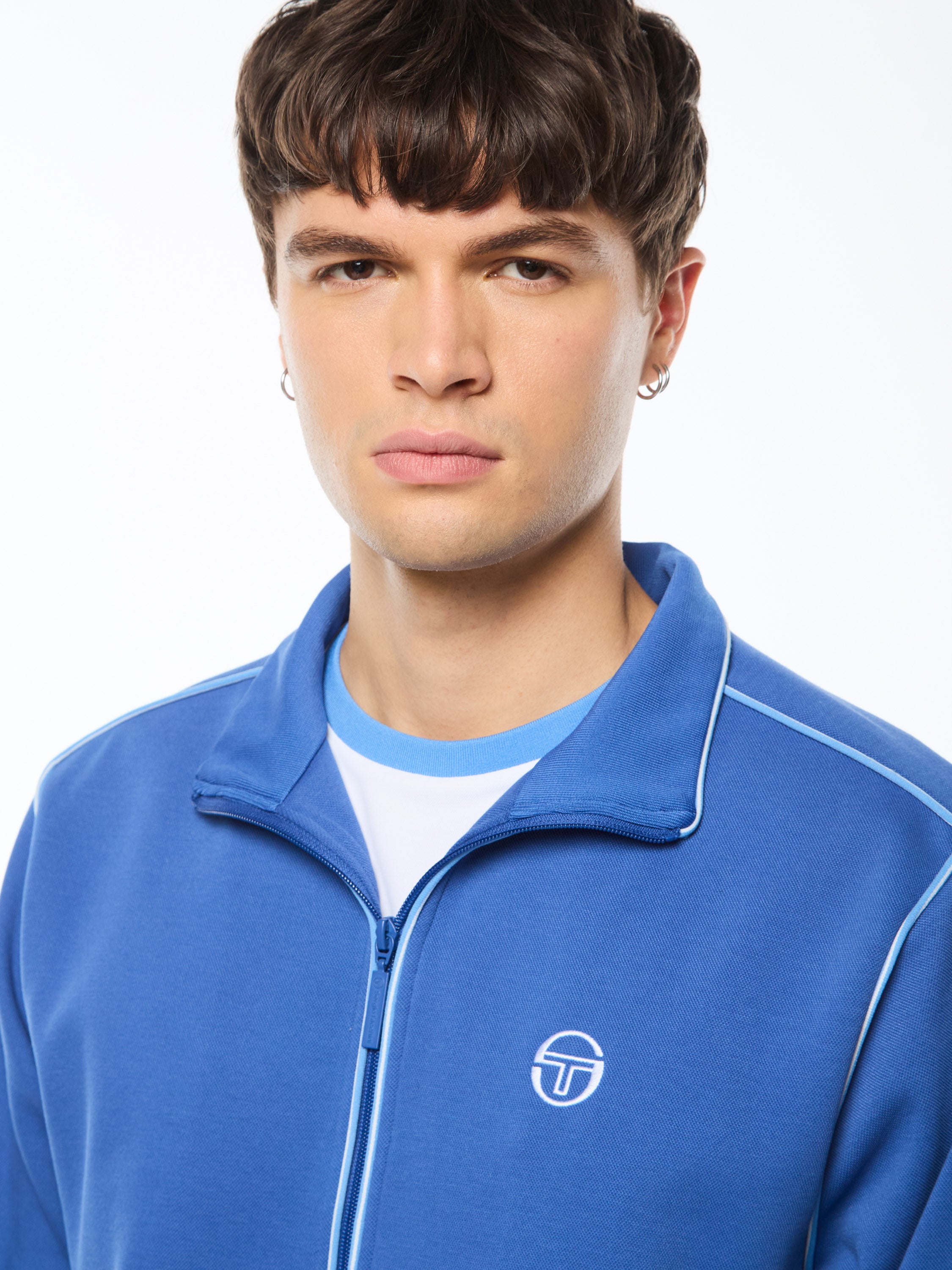 - Embroidered 'ST' monogram logo at left chest