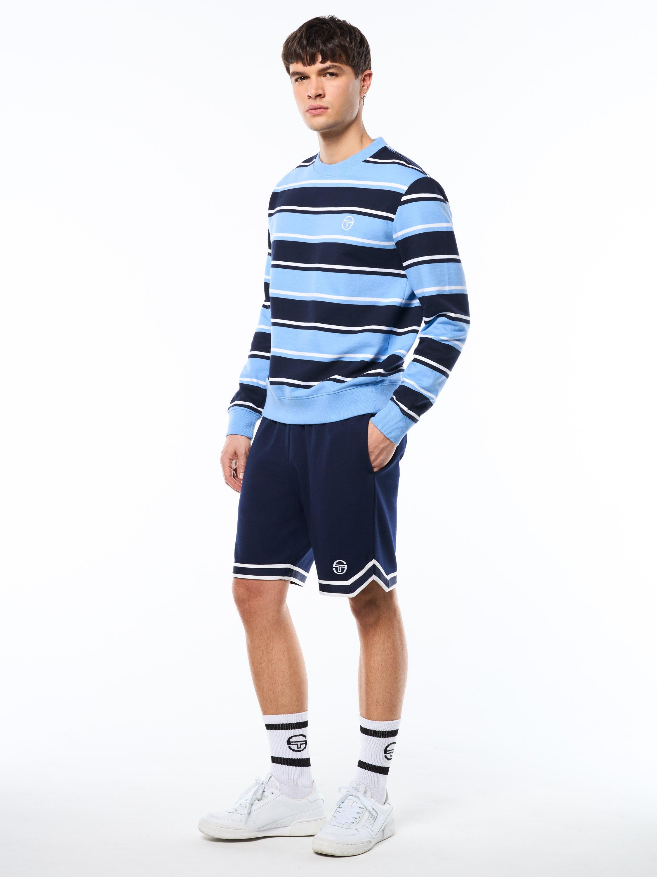 Rooted in Sergio Tacchini sport heritage, the Strisce Stripe Crewneck delivers a classic silhouette with standout stripe detailing. Design with French Terry fabric with a soft touch, and finished with subtle branding and a clean, easy fit, this crewneck is an everyday layer this premium crewneck brings polished comfort to casual wear.