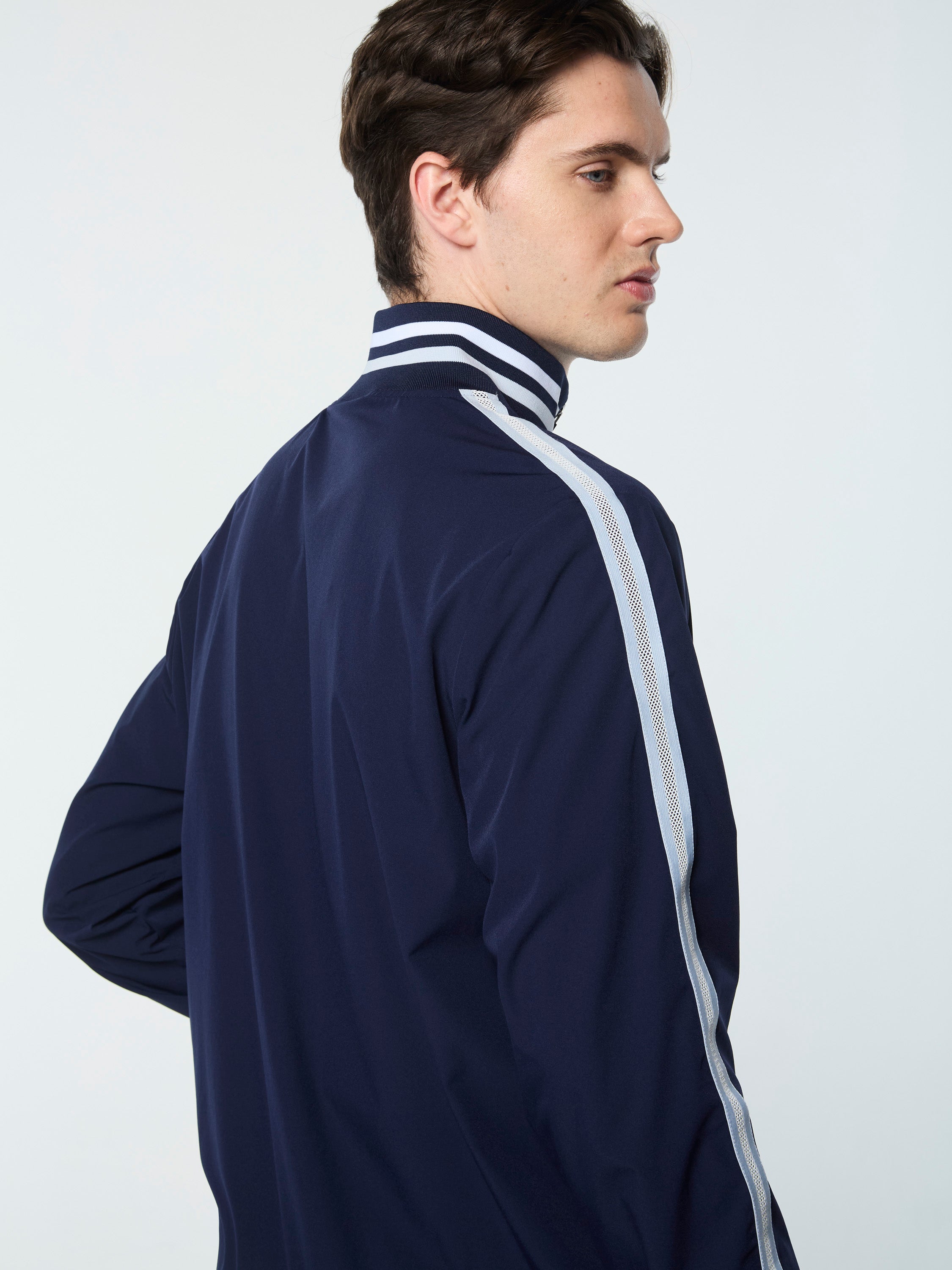 An elevated spin on classic sportswear, the Paco Track Jacket is crafted from lightweight performance stretch nylon to keep you cool and moving freely through any workout. Featuring tennis net-inspired elastic mesh trim down the sleeves for extra style points, this full-zip track jacket is finished with a hidden zip vent pocket at the left wrist.Pair with the Paco Track Pant for the full fit. (Sold separately)