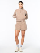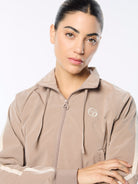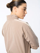 Designed to transition effortlessly from morning warmups to lunch outings, our Pippa Track Jacket is crafted from peached poly-nylon with an incredibly soft hand feel and unique two-tone effect. Featuring an adjustable drawstring at the stand-up collar for extra style points, this elevated track jacket is finished with contrast stripe taping down the sleeves.Pair with the Pippa Track Short for the full fit. (Sold separately)