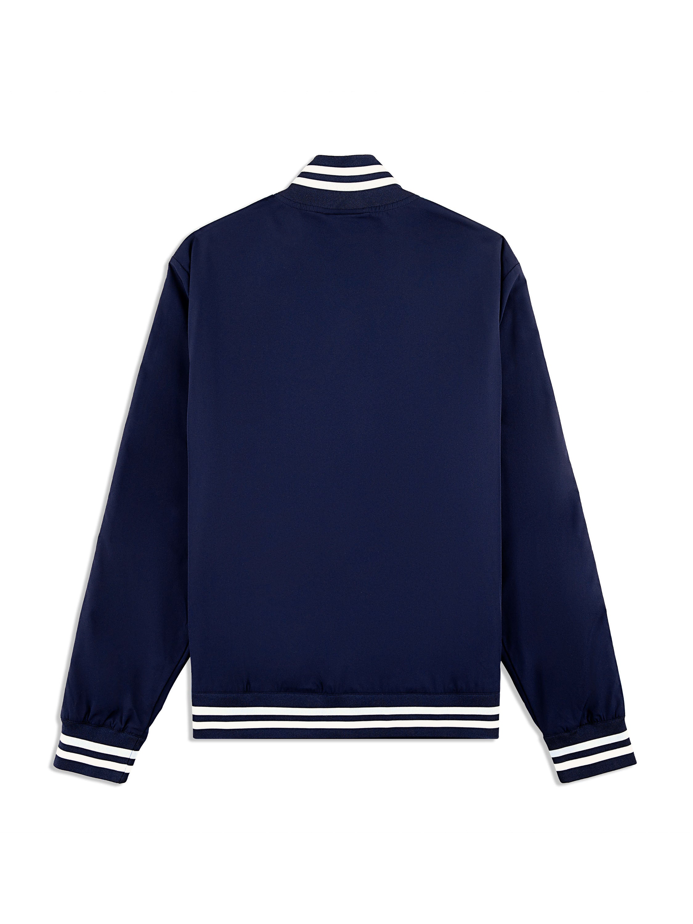 - Rib-knit collar, cuffs, and hem with double stripe tipping