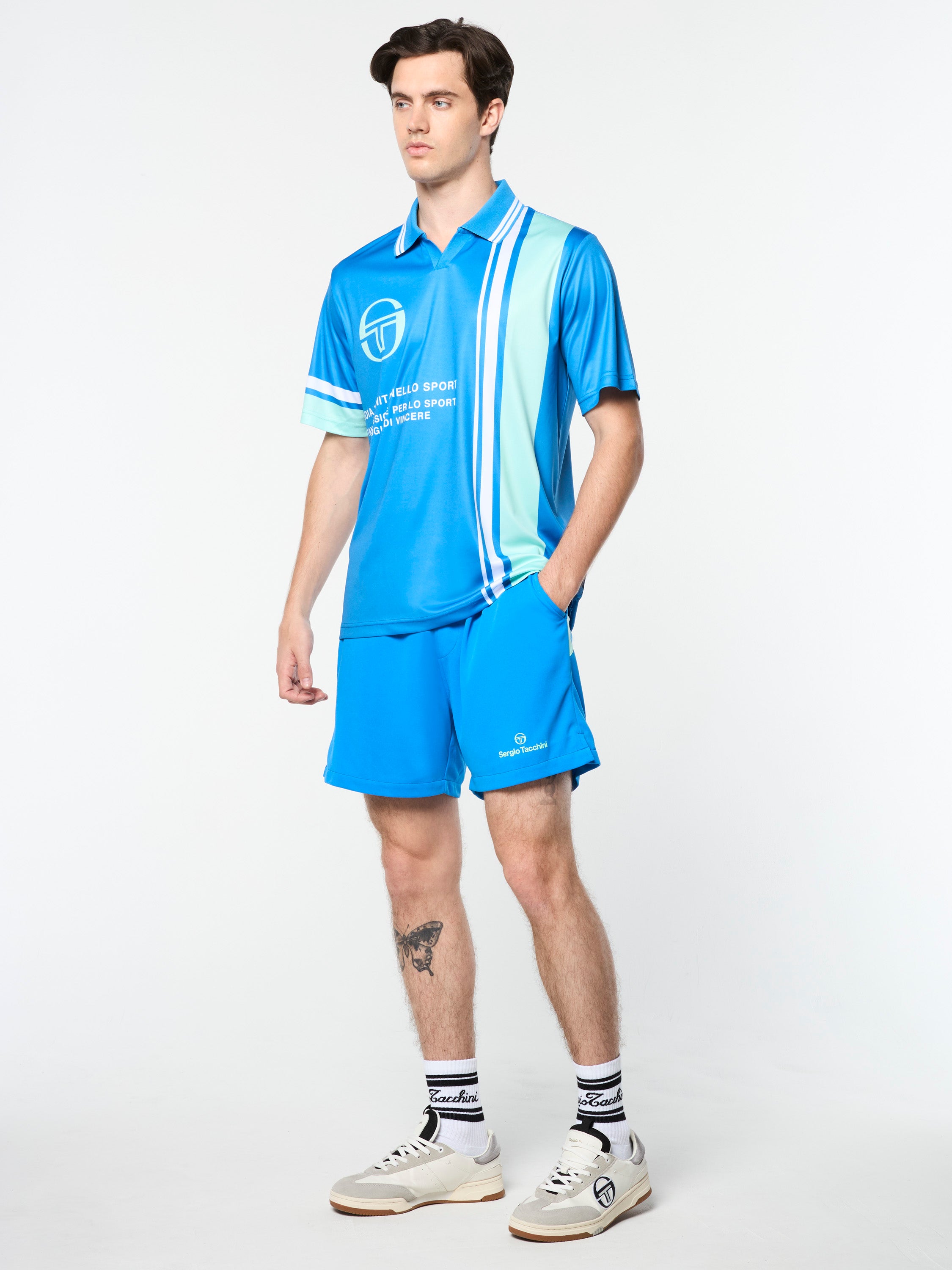 A game changer. Combining elegance and functionality, the Dante Polo is crafted from luxurious peached jersey fabric that's smooth and soft with a subtle stretch to keep you comfortable on the court. Featuring pop color striping and bold branding for a throwback vibe, this performance polo is finished with a notched Johnny collar for extra style points.Pair with the Luca Piqué Short for the full fit. (Sold separately)