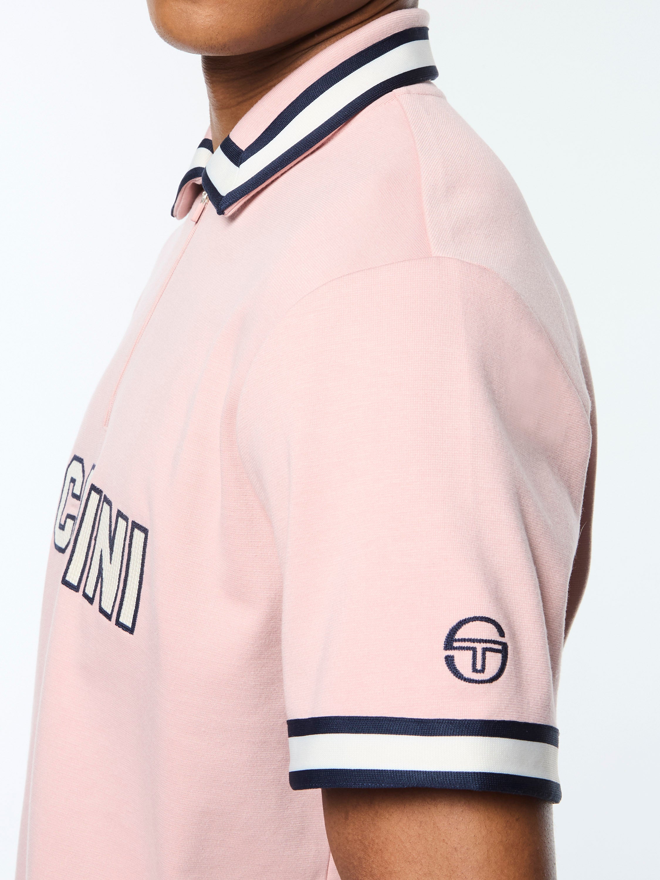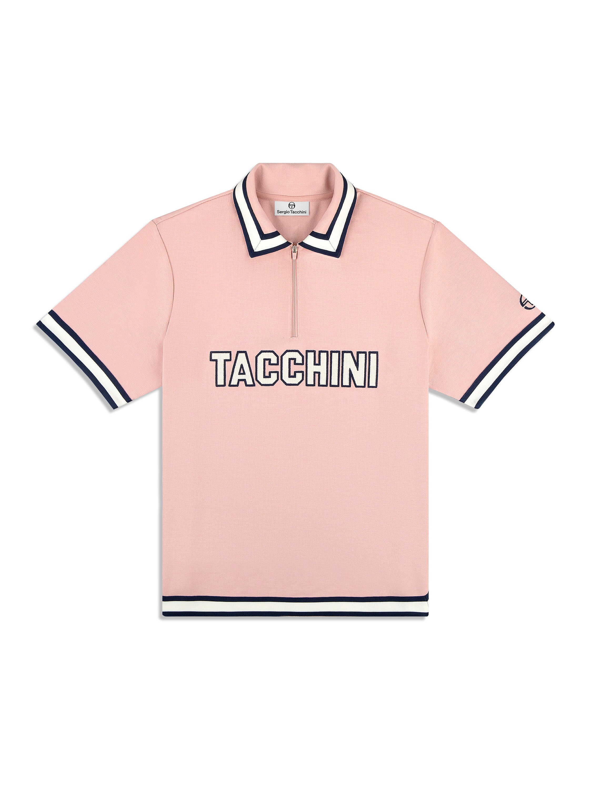 Keep it sharp with the elevated Tito Polo, crafted from heavyweight interlock fabric with an incredibly soft handfeel and subtle stretch for a refined finish. Topped with a zippered placket, this premium polo is complete with a notched hem, striped rib-knit taping at the trims, and a bold chainstitched Tacchini logo at the chest.
