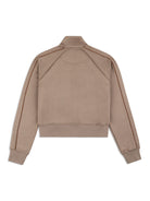 - Self-fabric stand-up collar with striped tipping at rib-knit interior
