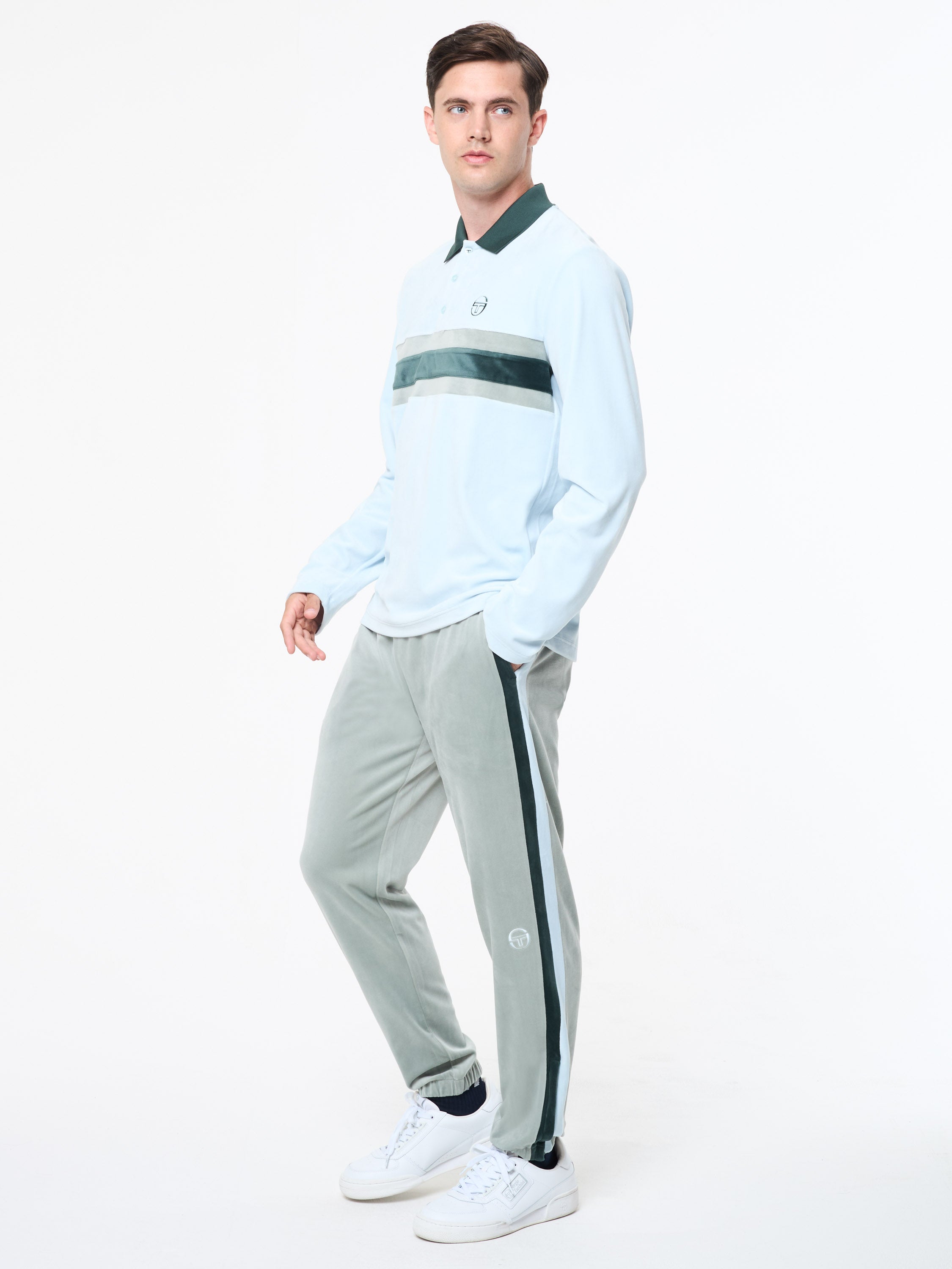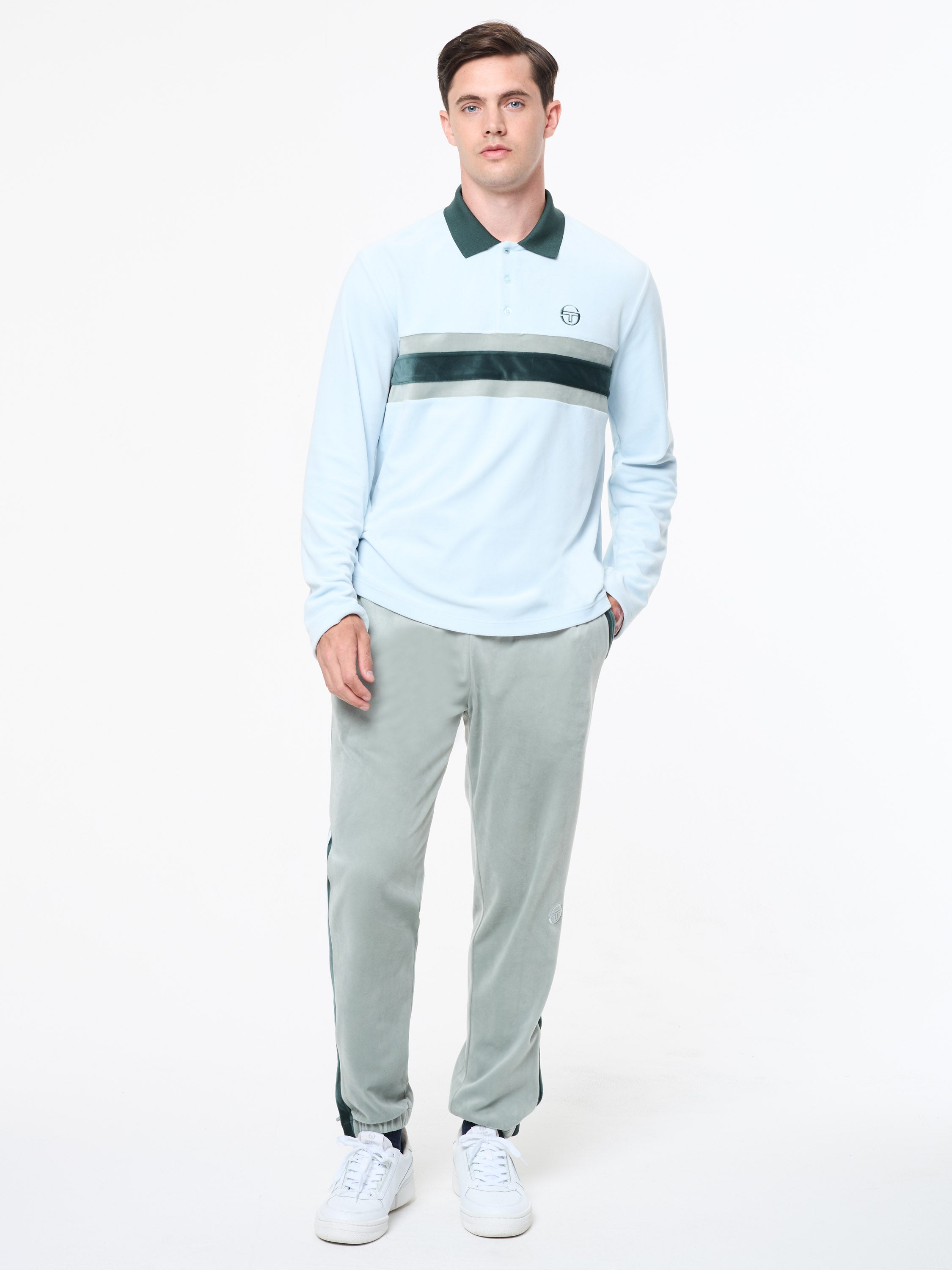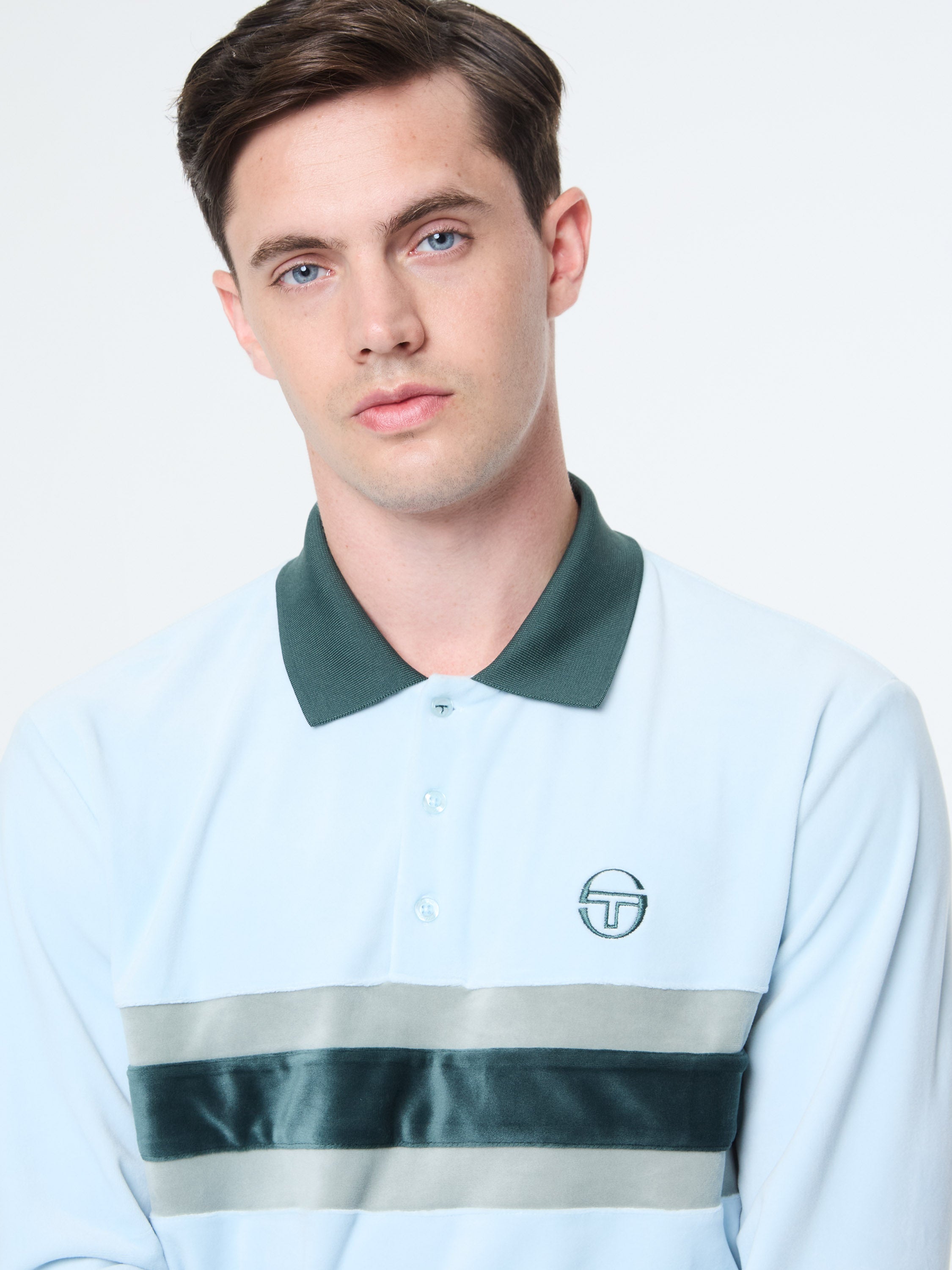 Retro style meets modern luxe. Crafted from plush stretch velour that feels super soft against your skin, the Banda Track Jacket delivers a bold statement with contrast stripe panels across the chest. Combining effortless comfort and elevated design, this premium polo is topped with a contrast rib-knit collar, vent placket, and our iconic 'ST' monogram embroidered at the chest.
