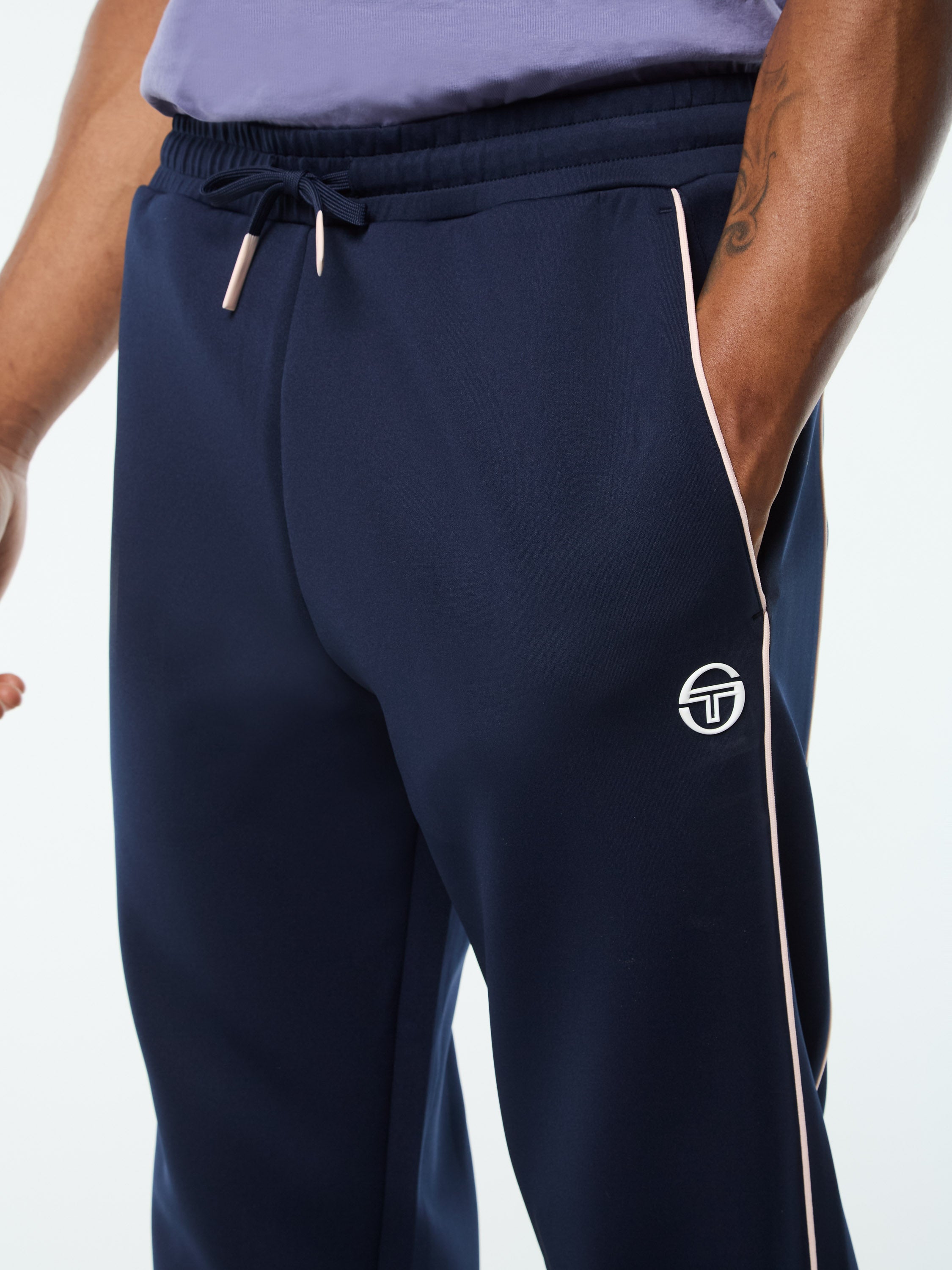 Built for movement, styled for the moment. The Lago Track Pant is crafted from smooth-to-the-touch diver fabric that's breathable and flexible with a springy 4-way stretch—ready for wherever the day takes you. Blending sleek performance with retro sport vibes, this premium track pant is complete with contrast piping accents and rib-knit double stripe panels.