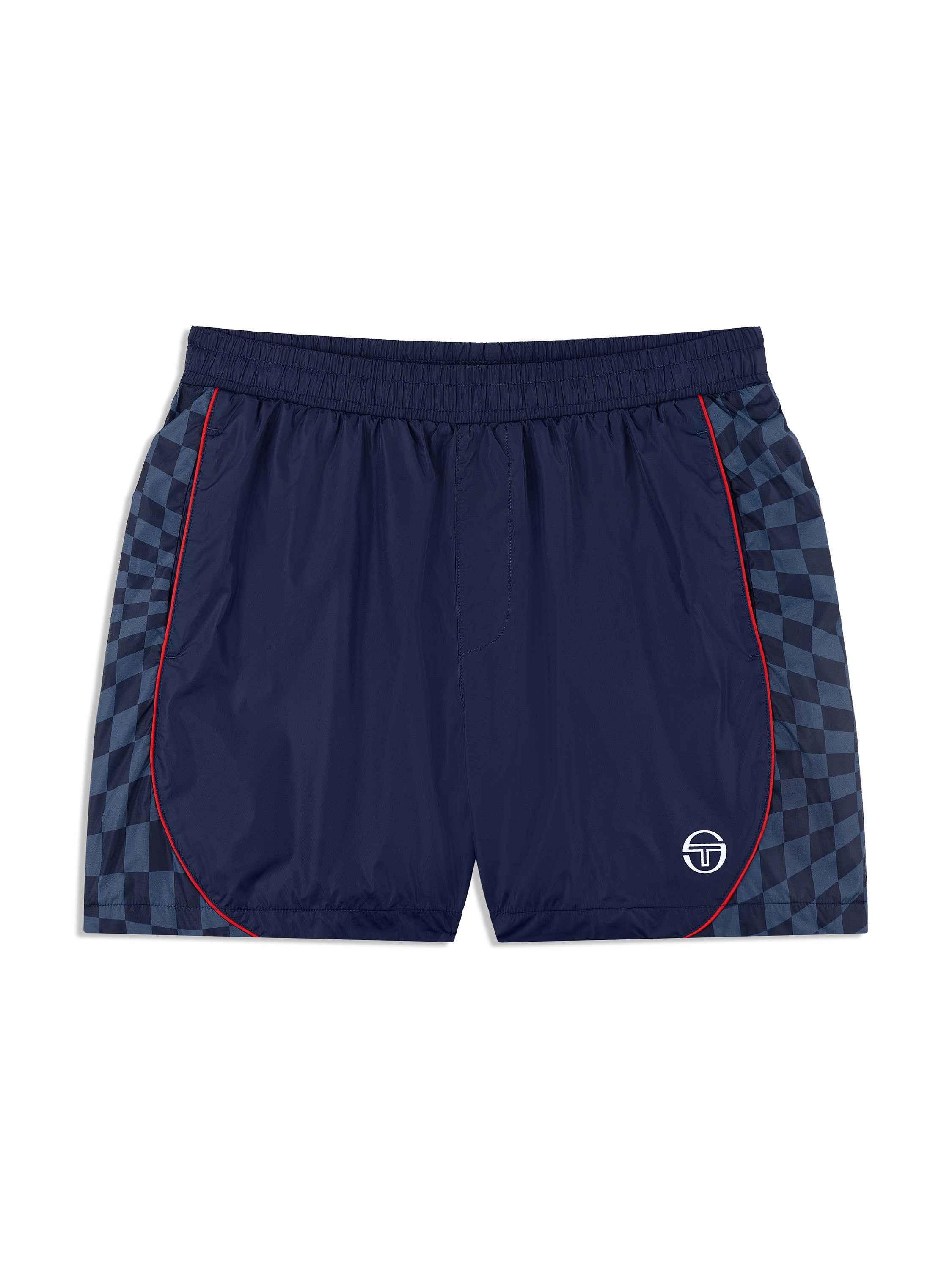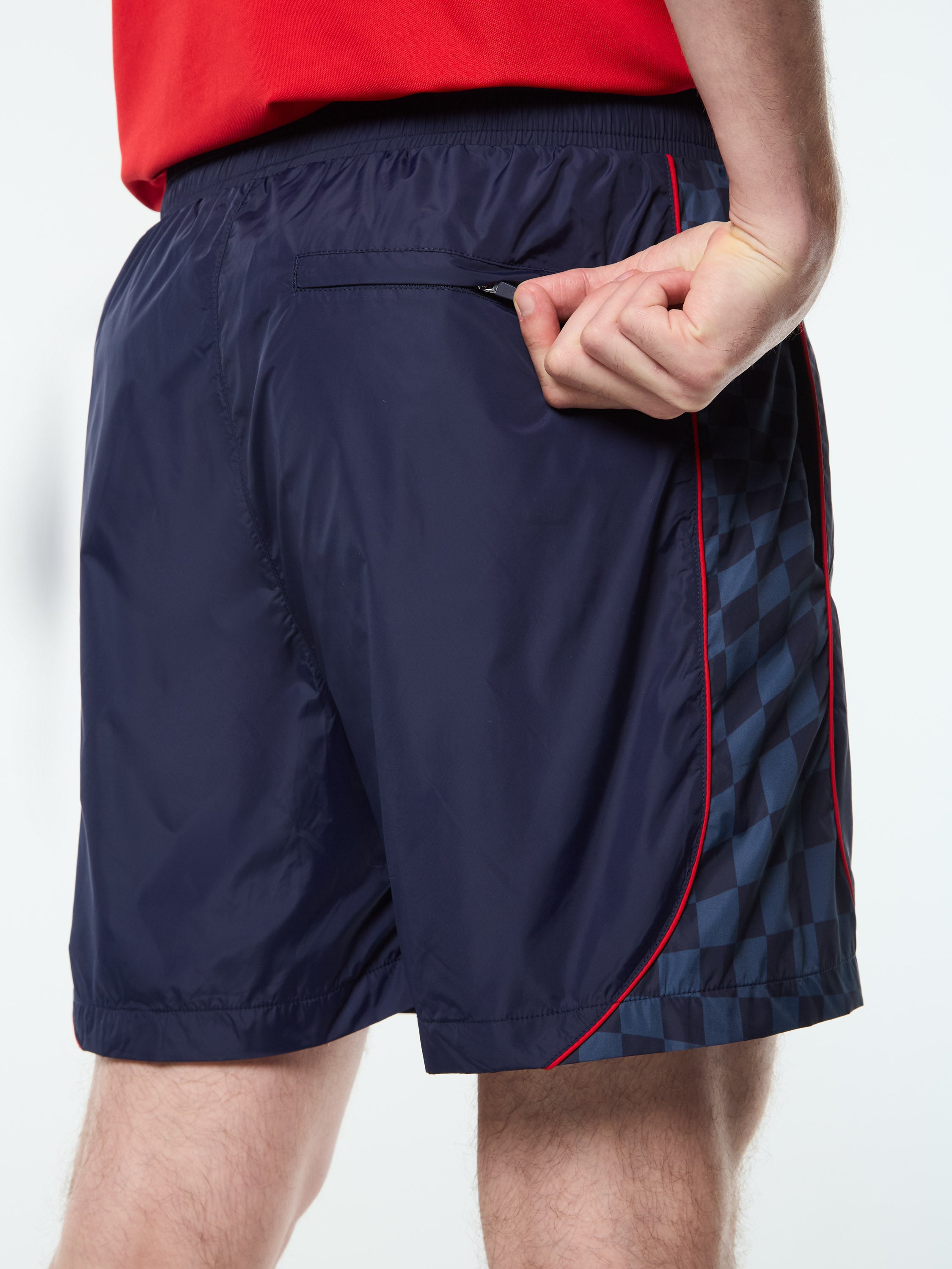 Fuel your fit with racing heritage. Our Macchina Short features a racing checkerboard print and contrast piping accents at the side panels for a bold trackside statement. Crafted from lightweight nylon taffeta with a drawstring waistband to keep things comfortable from the street to the stands.