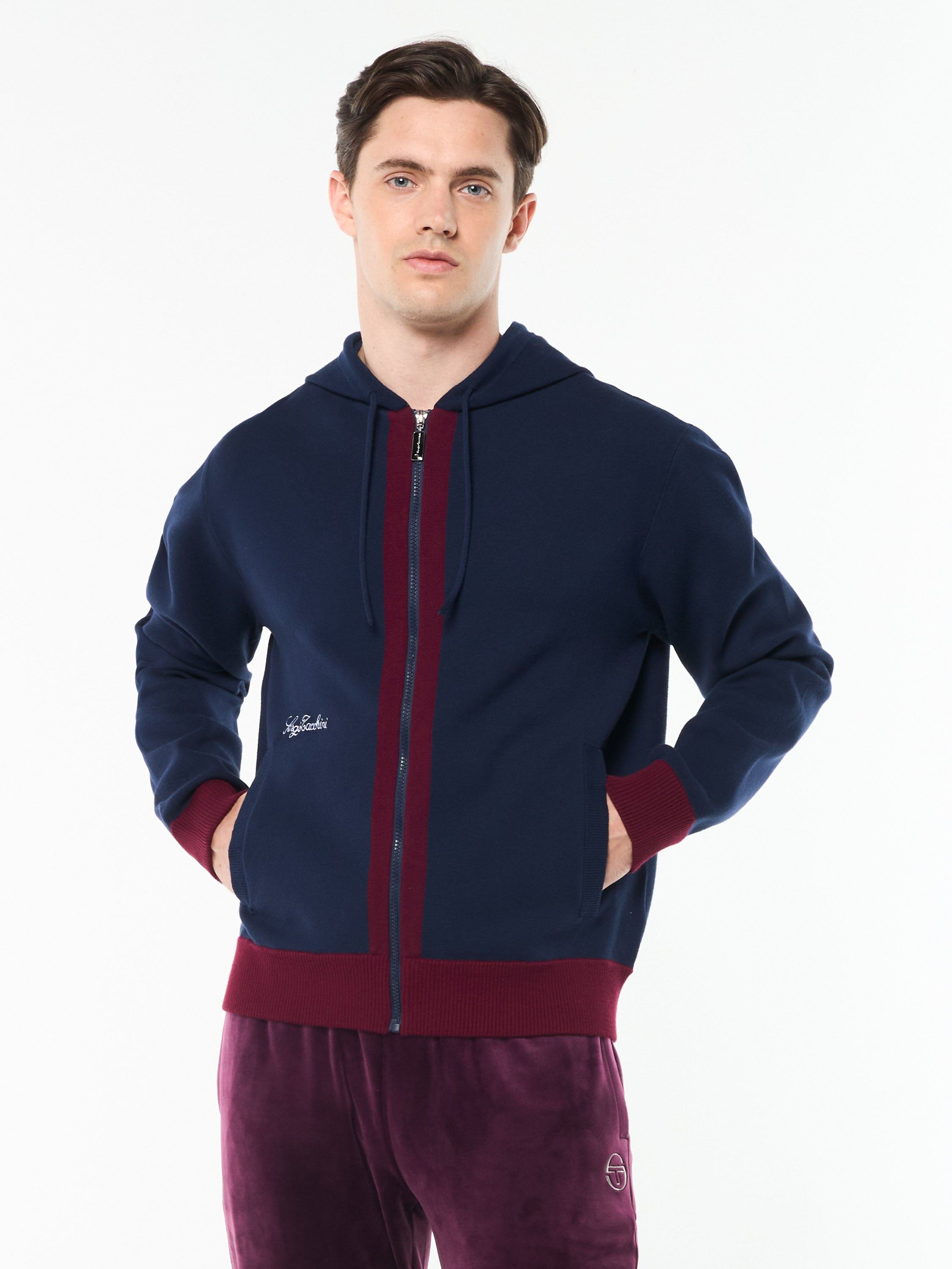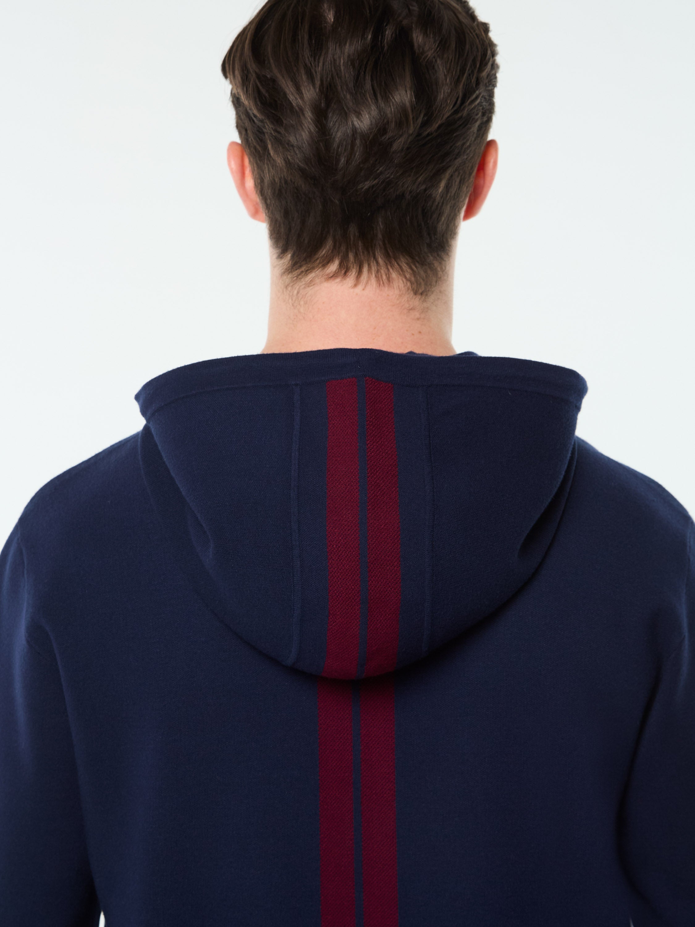 The Miglia Hoodie reimagines sport essentials through a lens of refined luxury. Crafted from premium Athena yarn—an eco-conscious viscose blend prized for its breathability, moisture-wicking performance, and exceptional softness—this elevated full-zip is designed with a contrast rib-knit placket and trims for sporty sophistication. Finished with an embroidered script logo and double stripe down the back, the Miglia delivers timeless comfort with a polished edge.