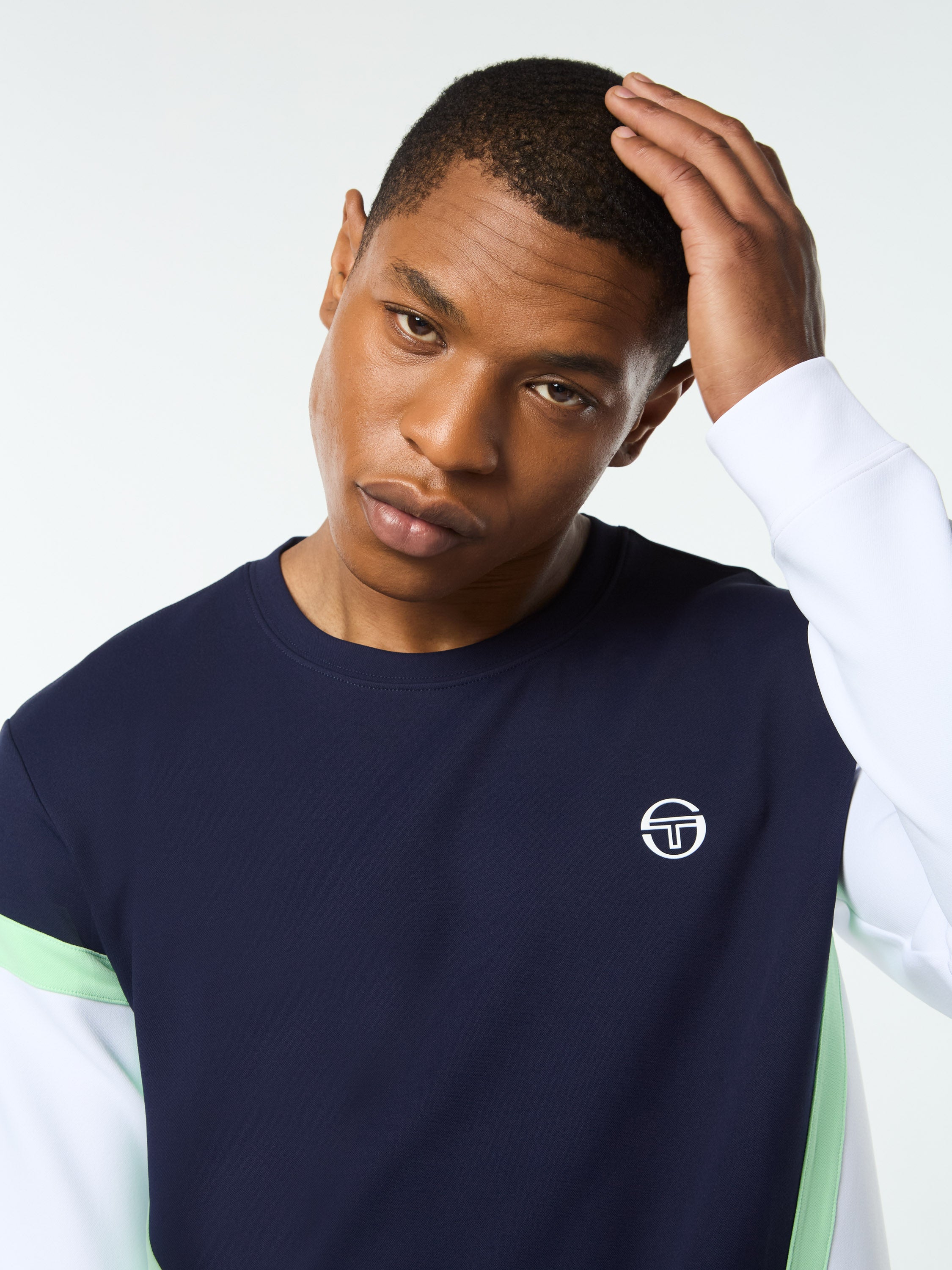 The Pagia Crewneck is crafted from performance piqué double knit fabric that's breathable and moisture-wicking with a subtle stretch to keep you dry and moving comfortably through any workout. Designed in a bold color-blocked silhouette for a fun and youthful vibe, this eye-catching crewneck brings unforgettable style and energy to the court.