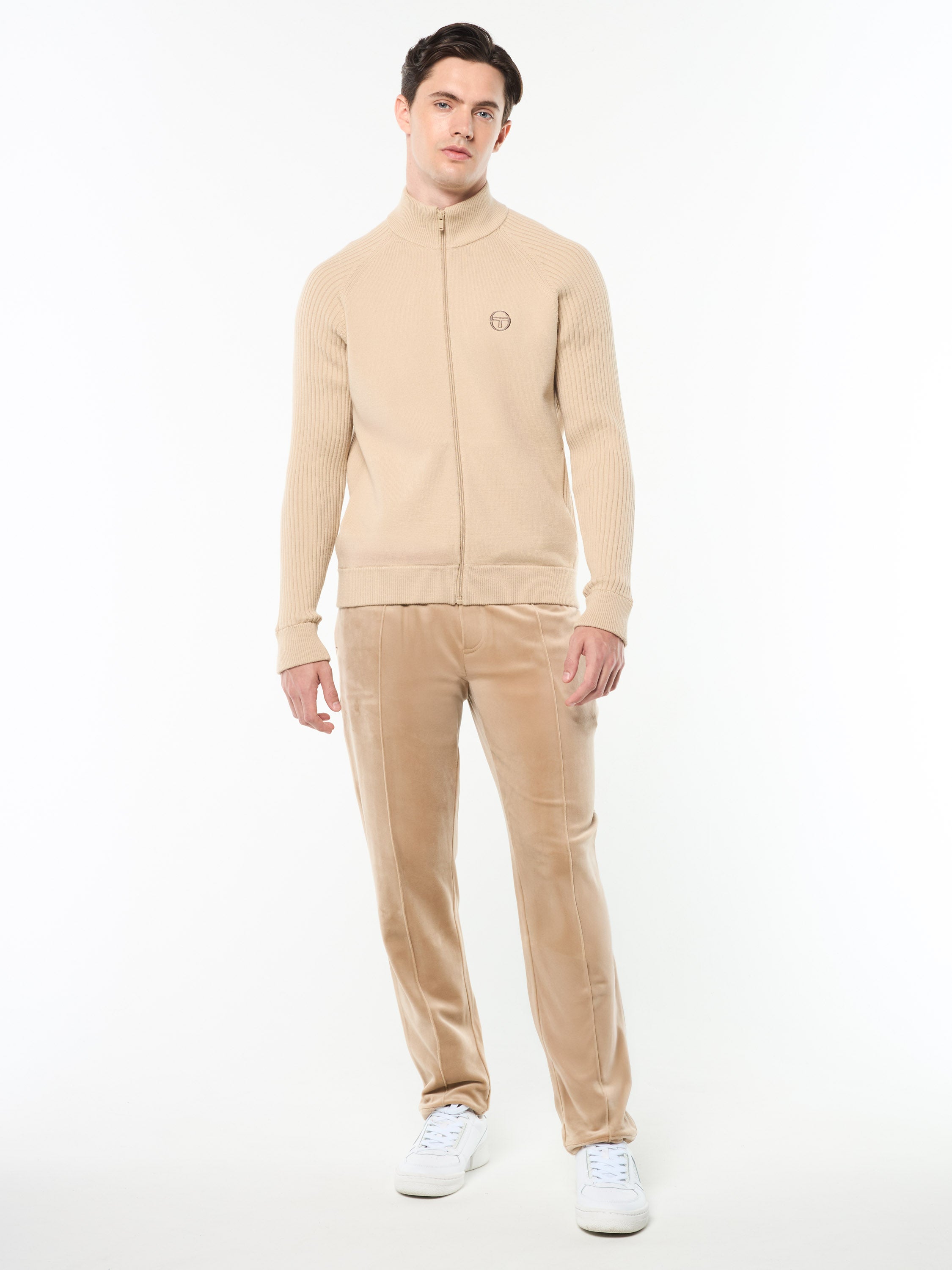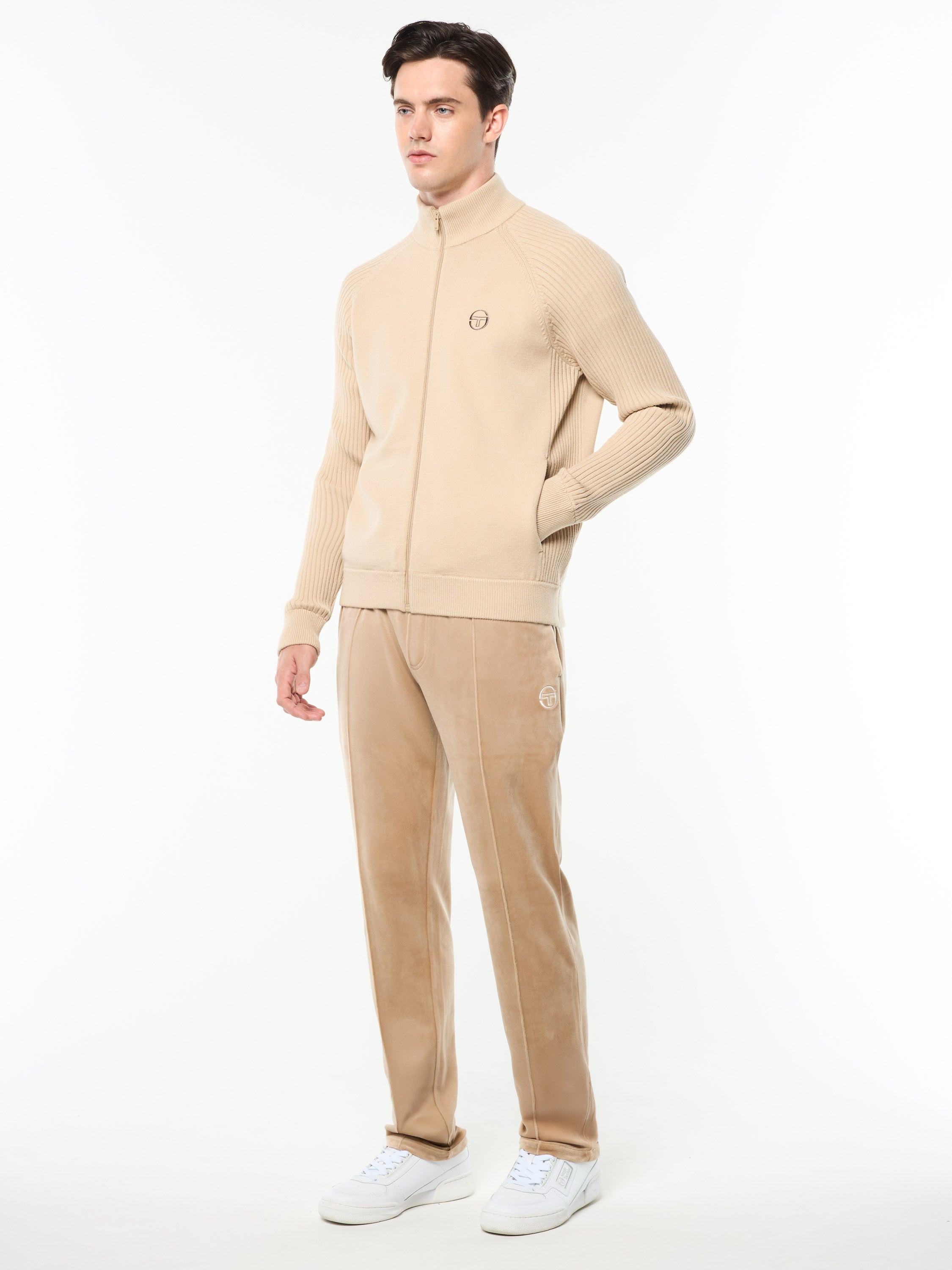 Our premium Saggio Track Jacket is crafted from high-quality Athena yarn that's breathable, moisture-wicking, and exceptionally soft to the touch with a luxurious sweater-like finish. Raising the bar for elevated loungewear, this top-notch track jacket is complete with contrast rib-knit texturing at the sleeves and side body panels, while hidden handwarmer pockets and an embroidered 'ST' monogram complete the look.