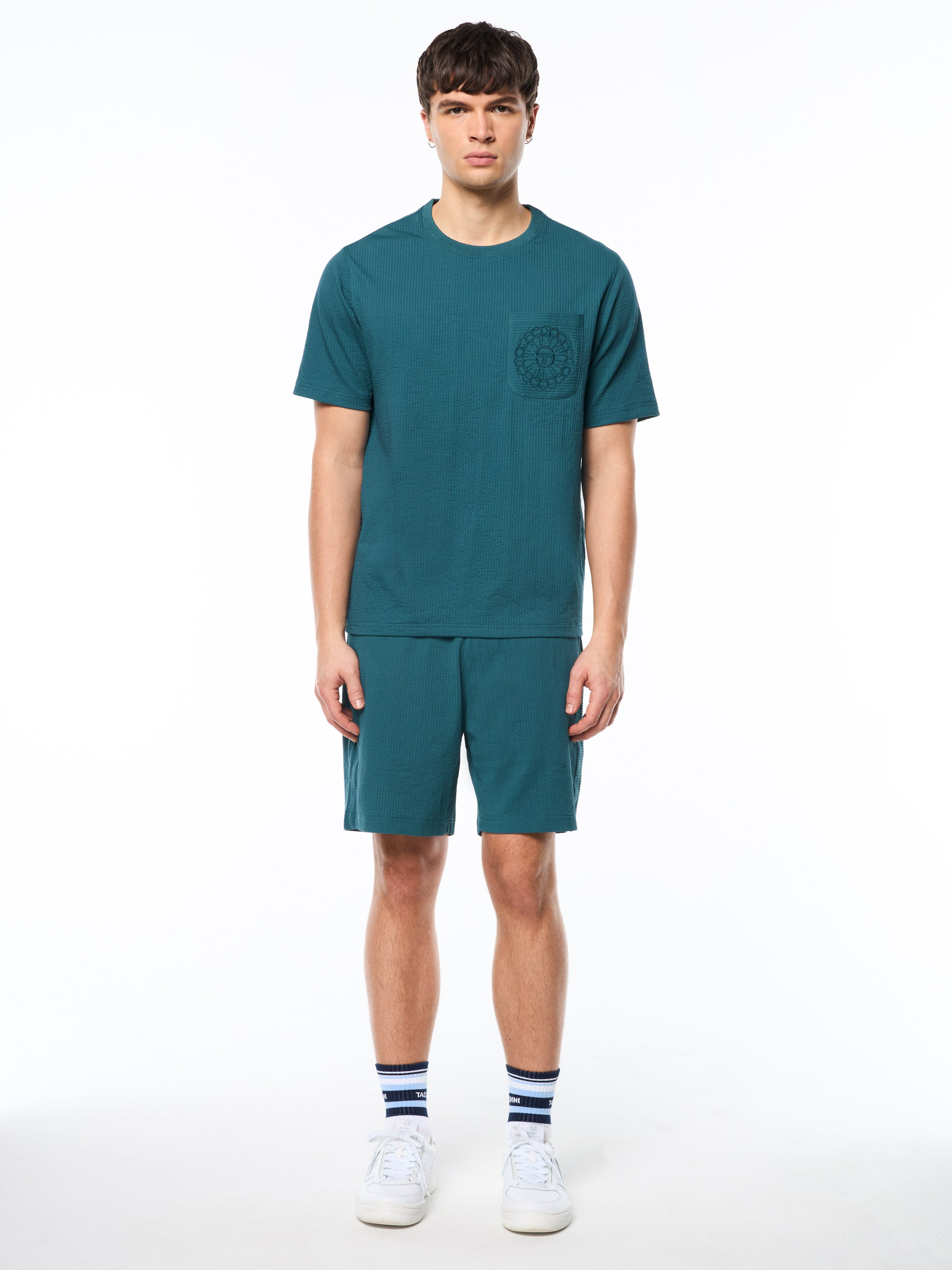 The Diaro Fashion T-Shirt delivers a relaxed resort feel with a refined Sergio Tacchini twist. Designed with seersucker cotton fabric for a lightweight, breathable feel. Finished with a subtle crest logo at the chest for a clean, elevated look. Easy to wear and effortless to style.