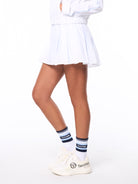 The Doni Skort delivers classic tennis styling with modern functionality. Designed with a lightweight woven outer skirt and built-in performance double-knit short, it offers breathable comfort, confident coverage, and effortless movement—ideal on or off the court.