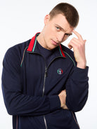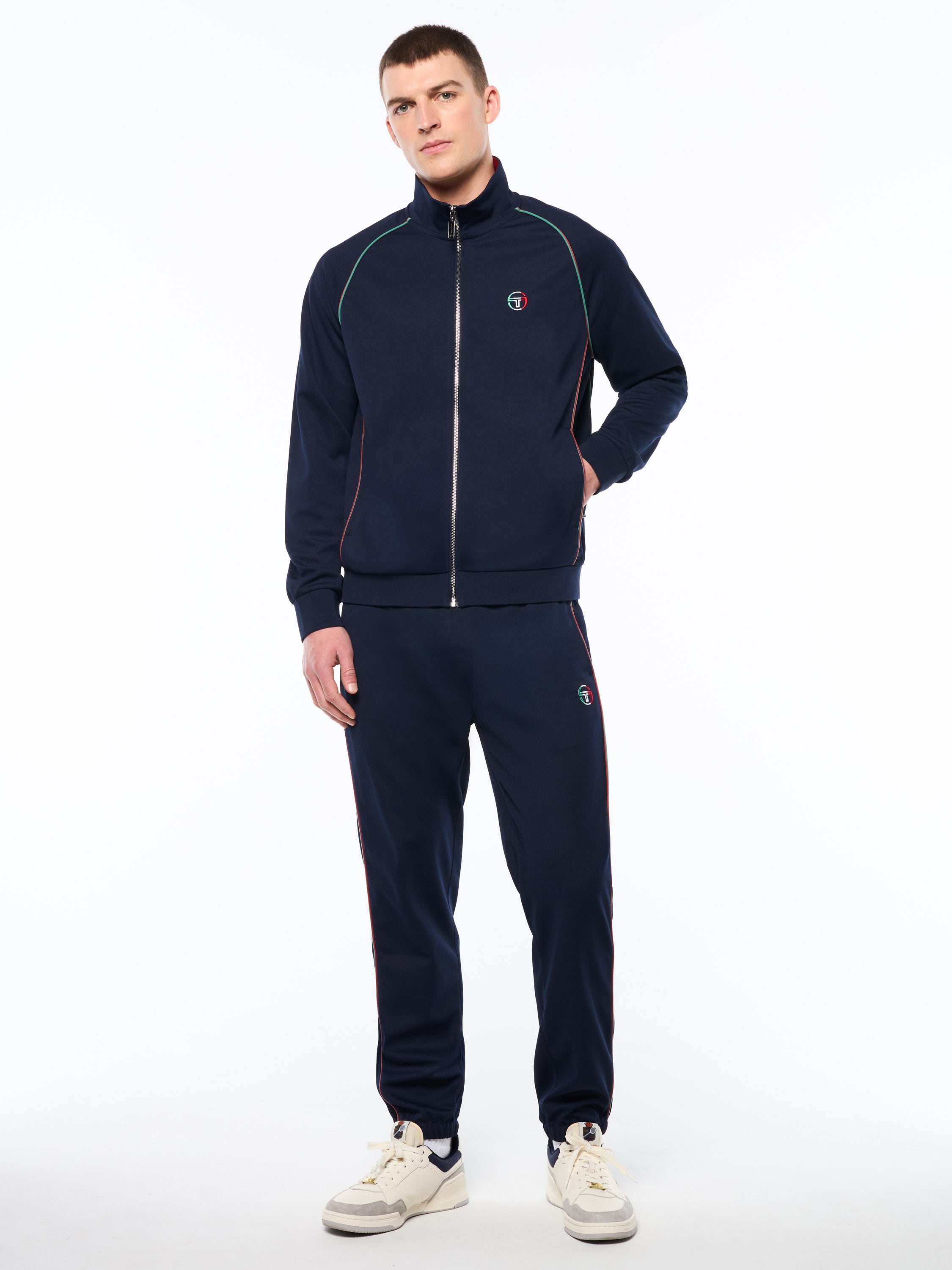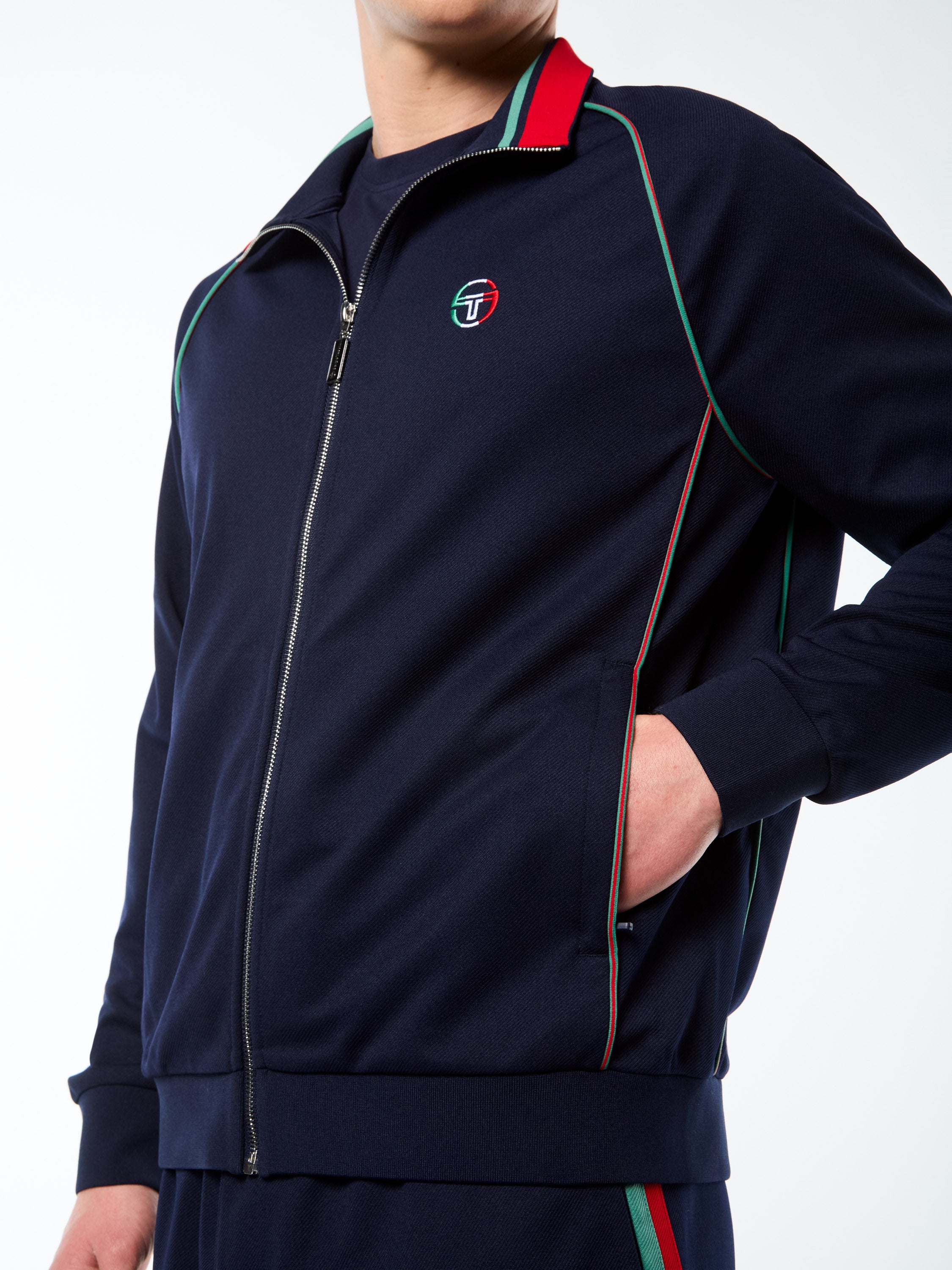 From our Italian Flag Capsule, the Eredita Track Jacket is crafted from durable track twill and designed with a clean full-zip silhouette and classic stand collar. Finished with signature Italian flag colors detailing and subtle Sergio Tacchini logo at left side chest, it delivers a refined heritage look.