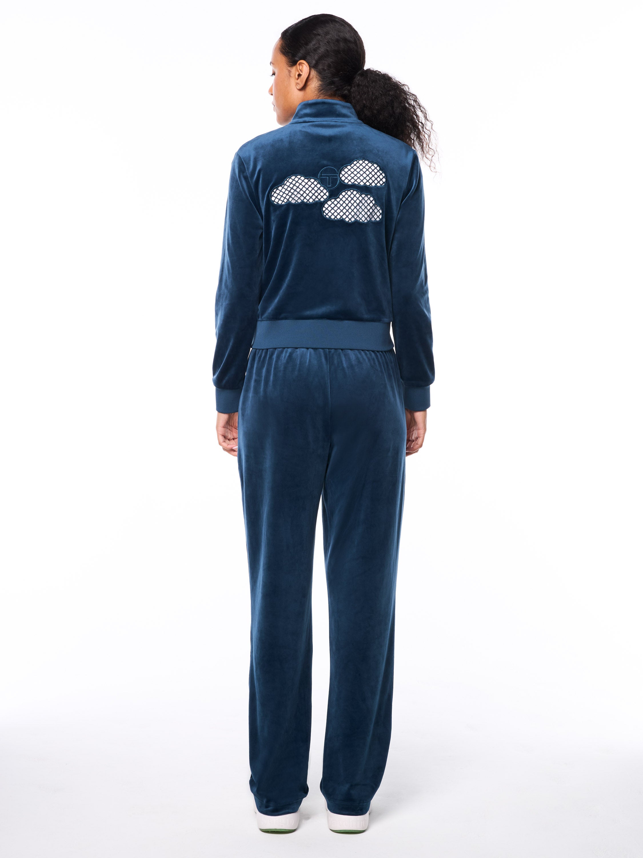 As part of our Air Travel capsule and Sergio Tacchini special 60th Anniversary edition the Nuvola Velour Track Jacket is designed with our signature premium velour, it ensures comfort that stays with you wherever you go, this track jacket is made for effortless everyday styling. Elevated with embroider ST logo and cloud shape details on the back that nod to the tennis court net, it blends luxury, sport, and timeless styles, a true celebration of Sergio Tacchini's legacy.