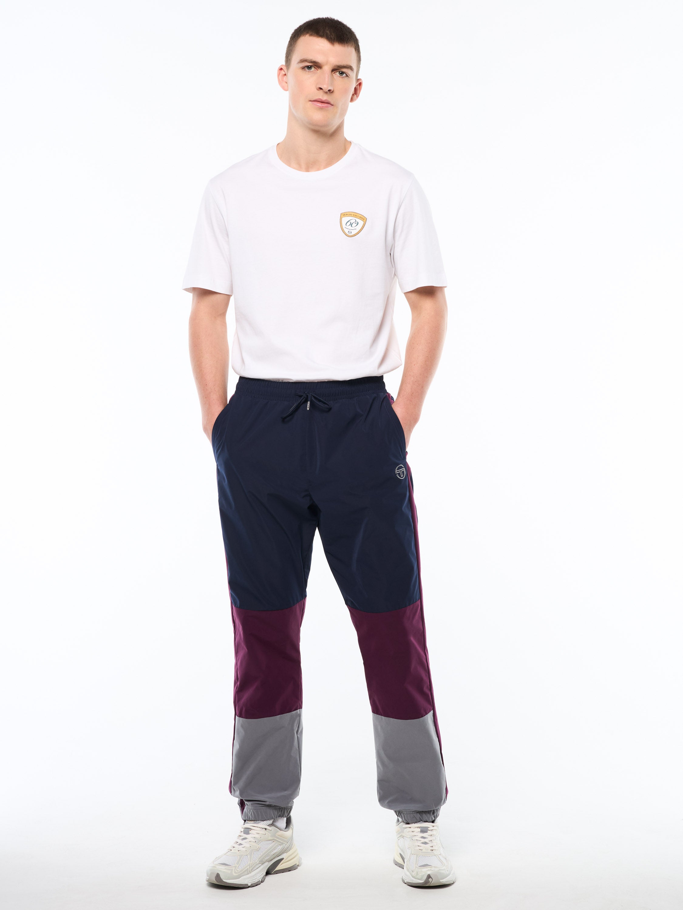 A refined take on sportswear. The Portico Track Pant is crafted from peached poly nylon for a comfort with a structured feel. Designed with 3 contrast color panels and side color stripe side legs detail for a clean, sporty vibe, these elevated track pants are ideal for downtime, warmups, and everything in between.